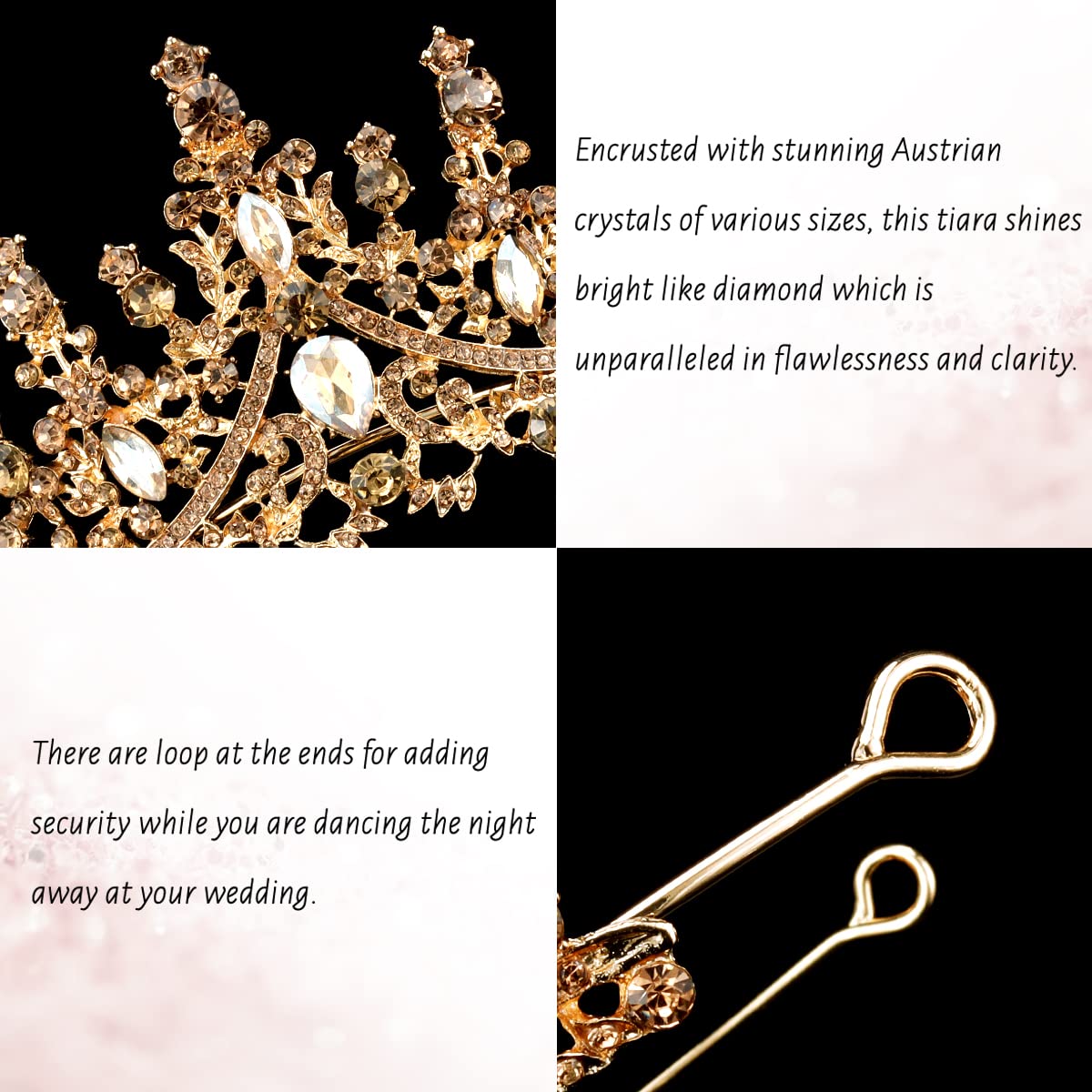 ♕ Size - Luxury bridal tiara is champagne gold, approximately 2.76 inches in height, 5.70 inches in diameter. Perfectly suit for any age women and teen girls. This crown is suitable as a traditional crown for adult women.