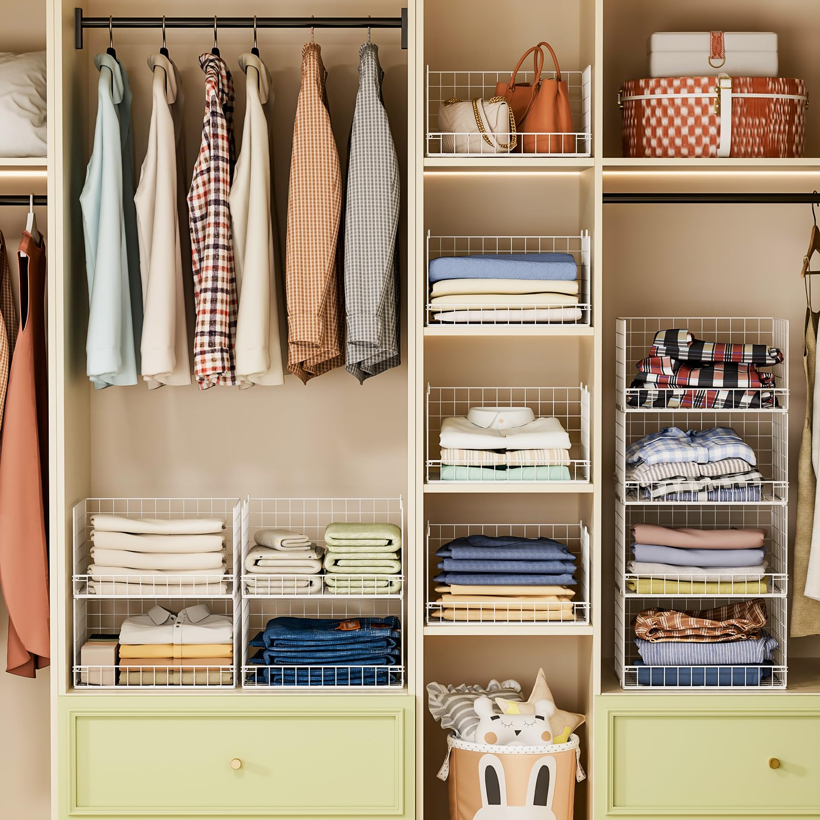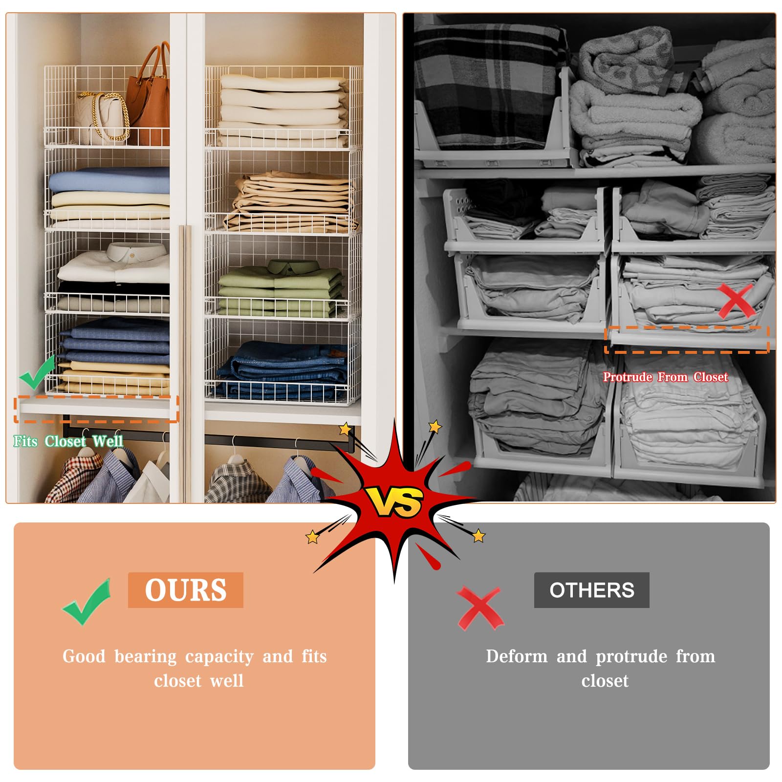 【Sturdy Iron Mesh】Made of premium iron mesh, these closet storage bins are sturdy, durable, breathable, visible, no smell. Would not bend or damage like plastic or cloth storage baskets.