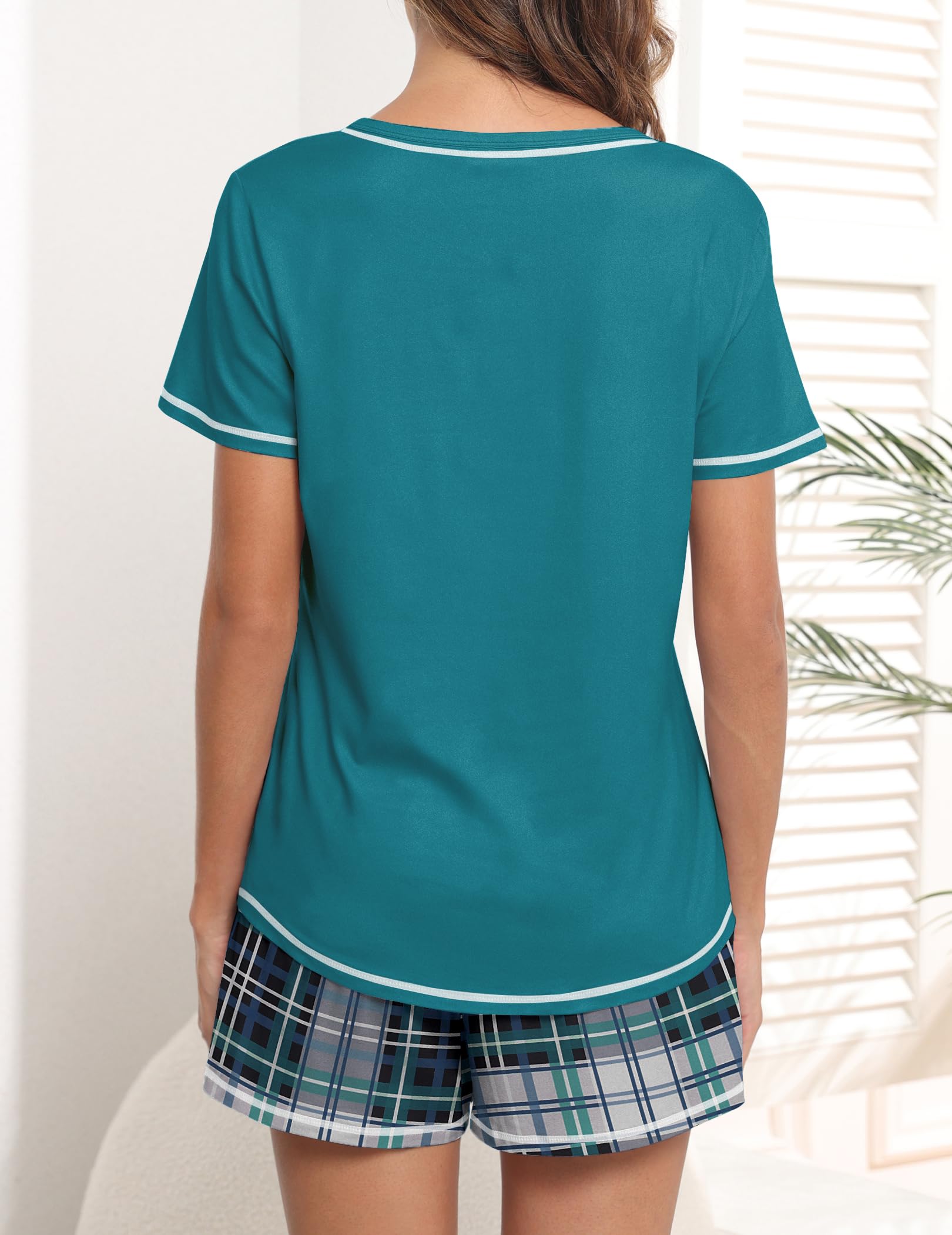 Design: The pajama top features classic chest pocket and V neck, with exquisite hemming workmanship; the pajama shorts features adjustable drawstring and pockets. Loose fit lounge sets, cute and comfy pajamas for women and teens girls