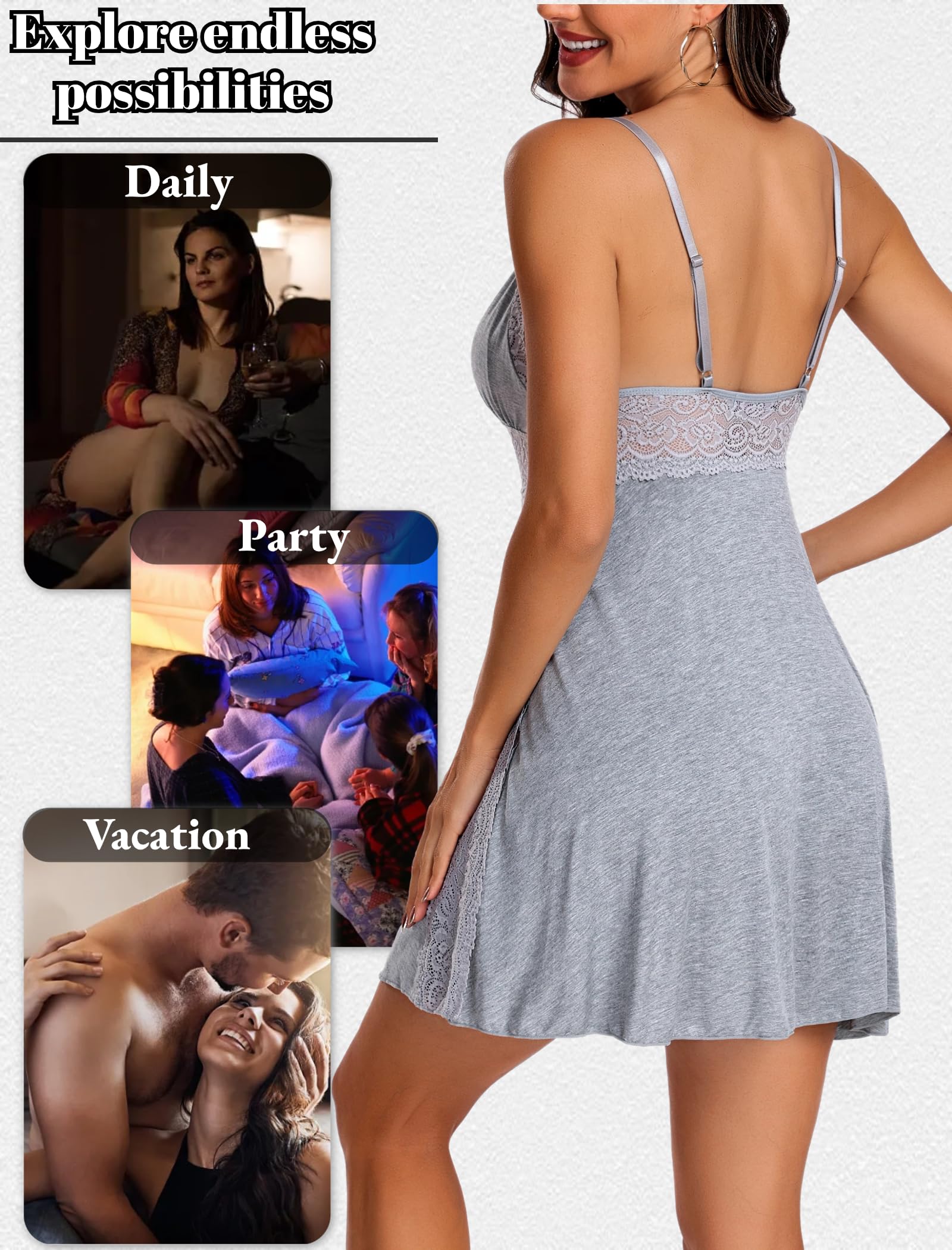 Unmatched Comfort: Crafted with 90% Polyester,10% Spandex, This sexy nightgown for women smooth, stretchy and lightweight modal material offers a soft and cozy feel. Assuring Indulge in ultimate comfort every time you wear it