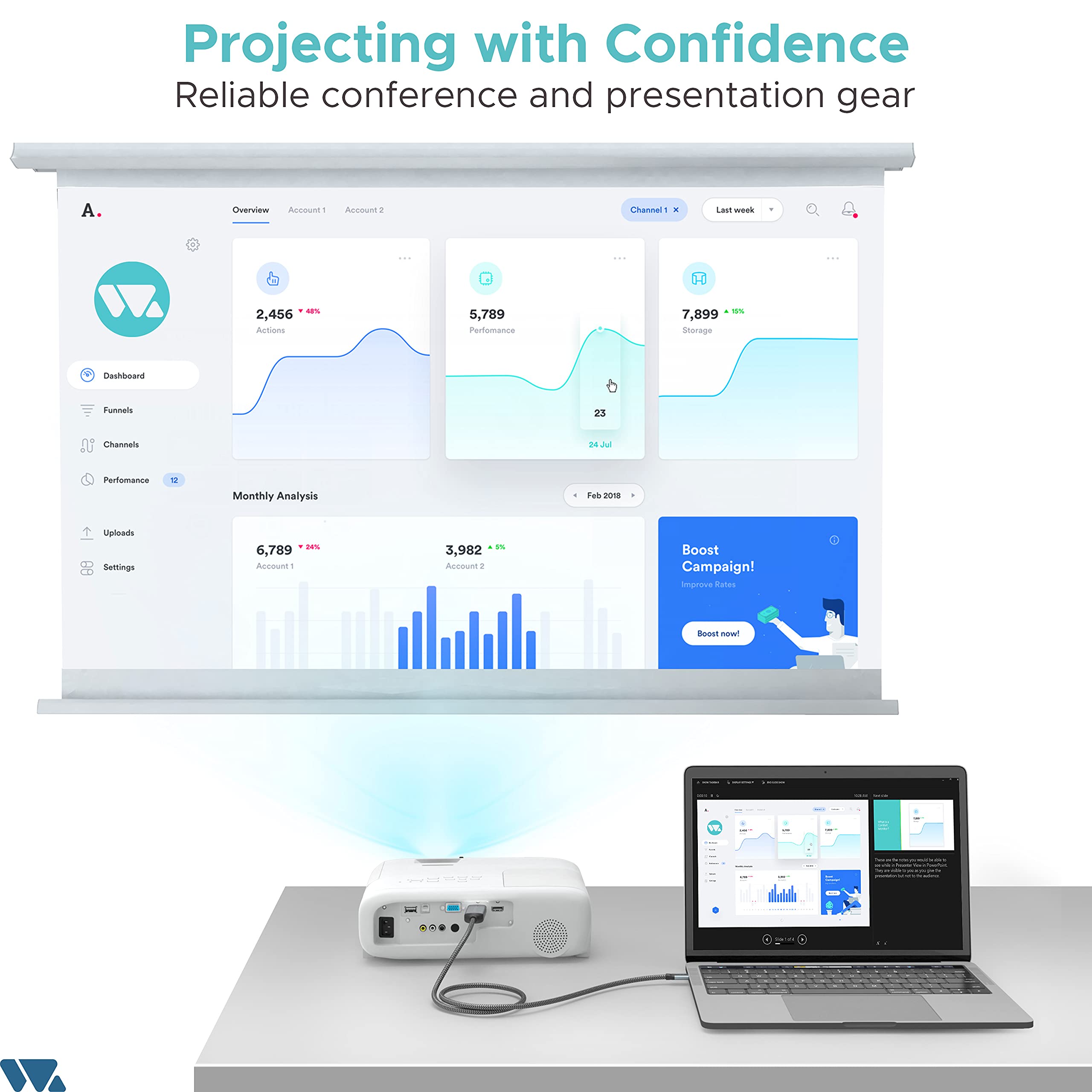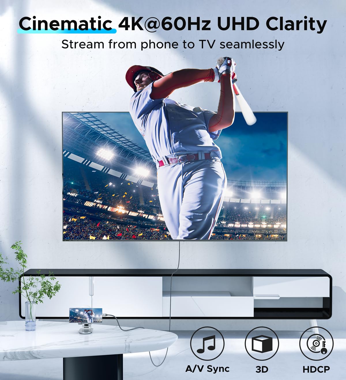 [Effortless Plug & Play] Crystal-clear and vibrant 4K@60Hz resolution backward compatible for 1440P/2K@144Hz and 1080P@240Hz. Instantly mirror or extend UHD content from your Type-C phone, tablet, laptop, and desktop computer to larger displays like monitors, TVs, and projectors. Leave behind the worries of unstable WiFi and the hassle of drivers. HDCP compliance lets you enjoy media streaming without any limitations. *Note: one-way chord, exclusively from USB-C host devices to HDMI displays.
