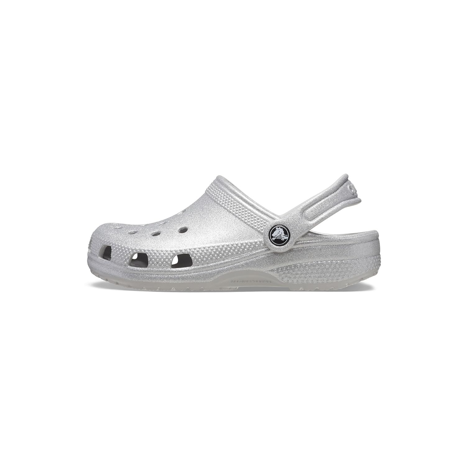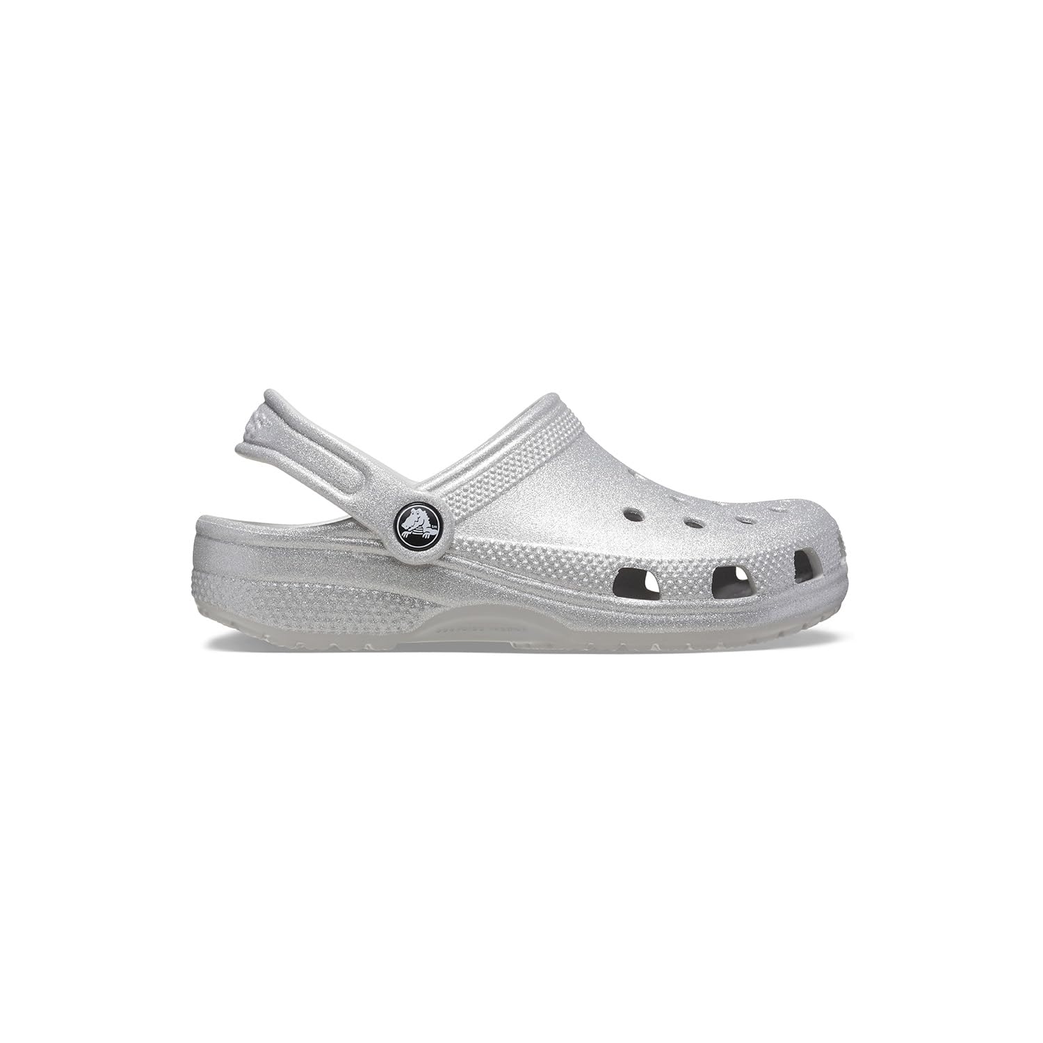 The Croc Kids Classic Glitter Clog looks chic and features an allover glitter detail. It offers comfort and the perfect look for your little one to have fun at parties.