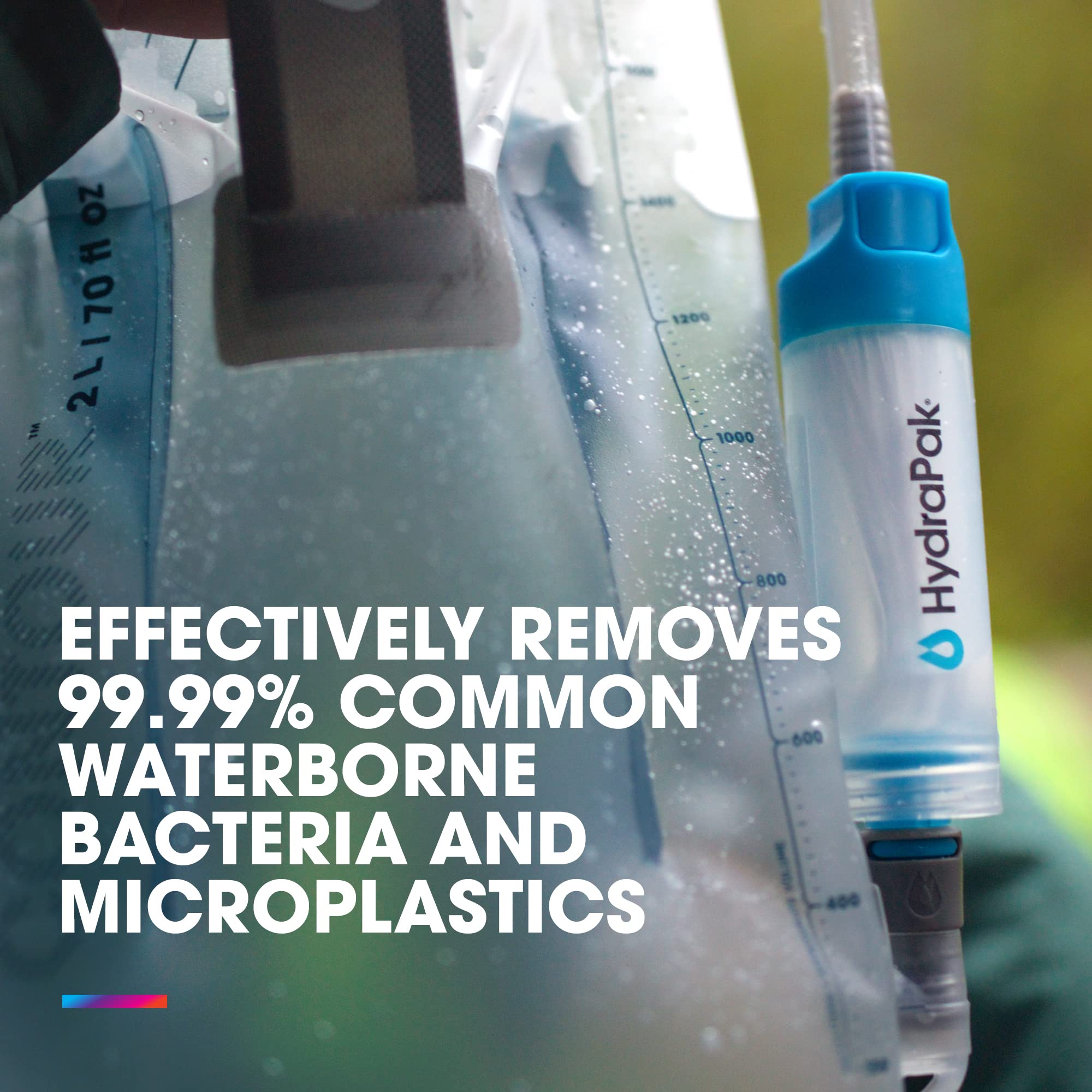 Access potable water anywhere. Convert your reservoir or water bottle into a water filter. The 28mm inline filter sets a new standard for lightweight, fast and versatile backcountry water filtration. Compatible with all HydraPak 28mm opening bottles and flasks, as well as Plug-N-Play connectors used on reservoirs and water storage containers.Avoid freezing filter. Freezing may ruin the hollow fiber membrane. Filter Kit includes:Inline FilterCap Adapter - Plugs into filter outlet allowing user to thread on their Stow or Smart Water™ Bottle cap.Backflush adapter - Plugs into filter outlet and threads onto a HydraPak Stow or bottle of clean water for backflushing the filter in order to restore its flow rate.Product use and care instructions*Effectively removes common waterborne bacteria, such as E. coli (99.9999%), and parasitic cysts (99.999%) per EPA Guide Standards and NSF P231 and microplastics (99.999%) per NSF 42 greater than or equal to 3.0 microns in size.EPA COMPANY NO.:102123EPA ESTABLISHMENT NO.: 102123°CHN°1Weights and DimsDiameter: 34 mm / 1.3 in Weight: 47 g / 1.6 oz (filter only)Length: 129 mm / 5.1 in