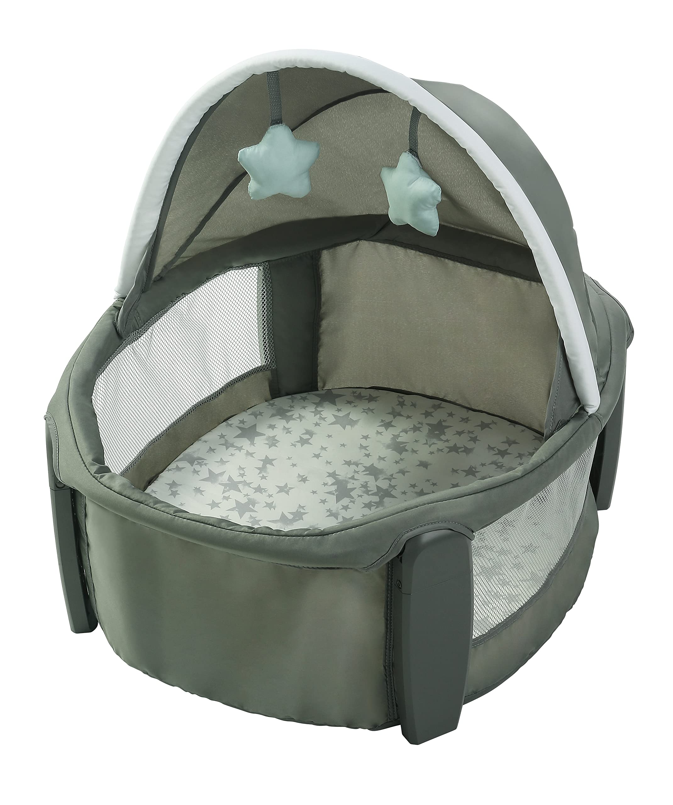 Travel Dome bassinet easily lifts out from playard to be used in any room of the house, keeping baby nearby