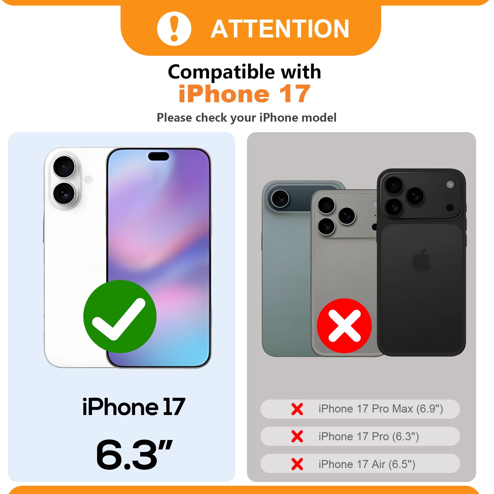 【Compatibility】This detachable case wallet with card holder is only compatible with iPhone 17 (6.3 Inch display, 2025 Released), NOT fit for any other phone models. Please confirm your phone model before placing an order.