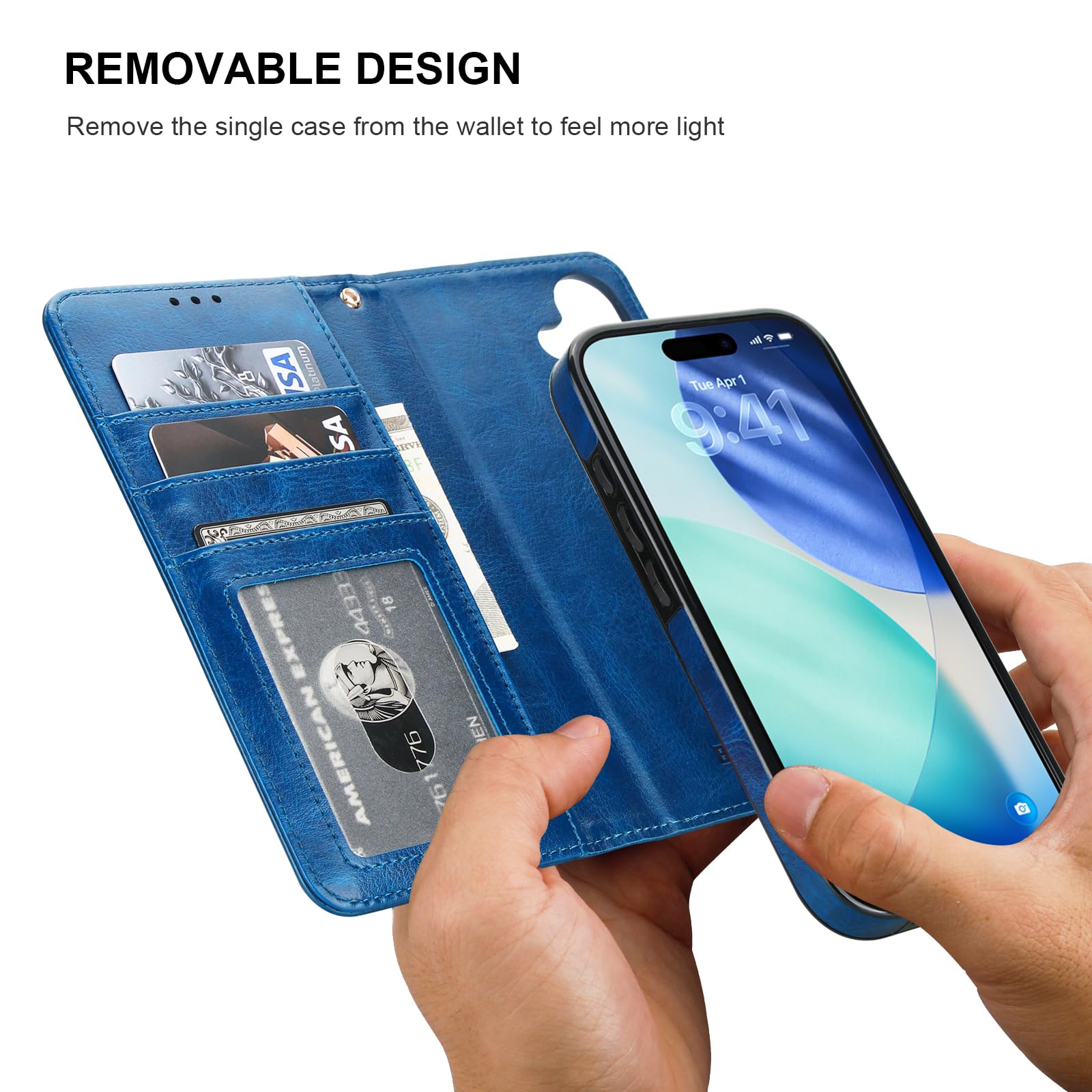 【2 In 1 Magnetic Folio Case】It is a convenient phone case with wallet when the wallet part is attached to your phone, and it is a slim leather case when the wallet part is detached from the case. You can change between these 2 ways of usage as you like.