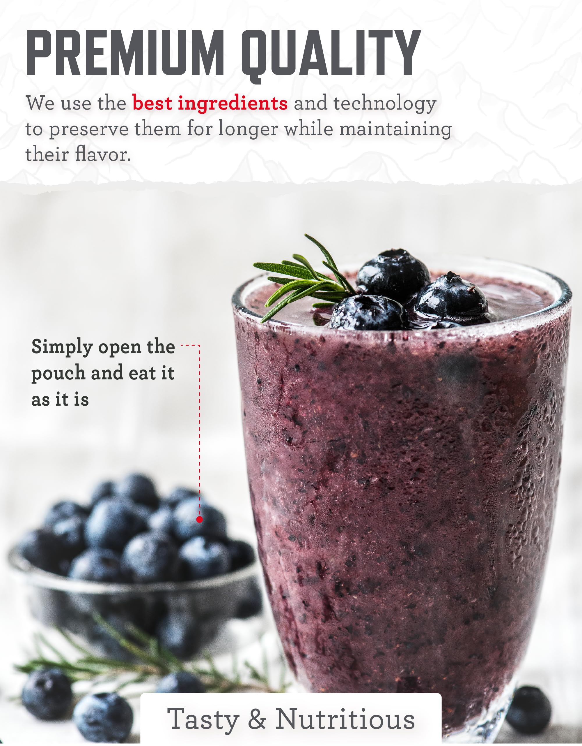 NUTRITIOUS MEALS: Our survival food kit offers not only convenience but also tasty, nutrient rich freeze dried fruit options, such as freeze dried blueberries, apples, strawberries, and bananas to enhance your camping meals in a reliable way.