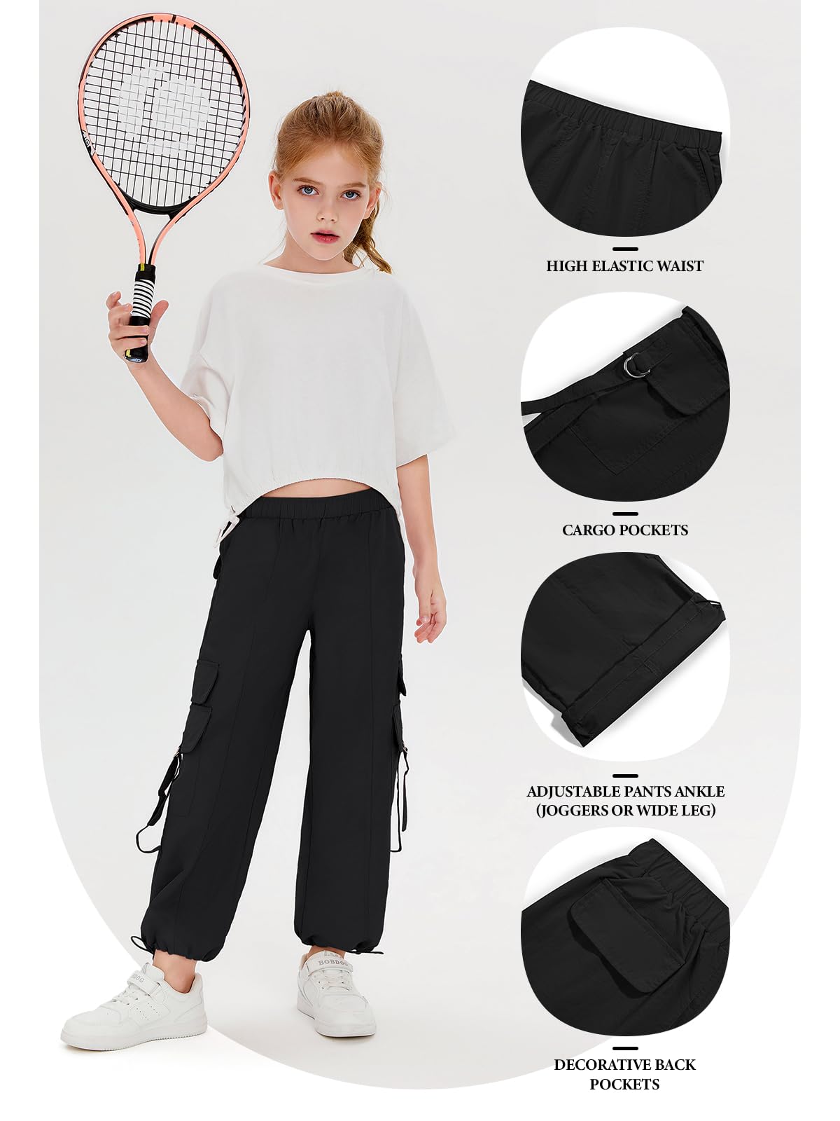 Materials: Parachute pants for girls are made of non-stretch, breathable, lightweight, quick dry, super soft and durable fabric that will keep you comfy and cozy all day long, perfect for active kids