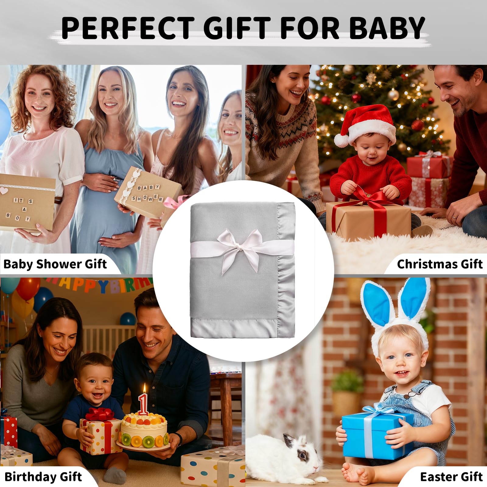 【Adorable & Thoughtful Design – With Luxe Satin Trim】: Finished with a silky 2-inch satin border, this blanket brings both elegance and comfort. The satin trim adds a stylish accent to cribs, strollers, or nursery décor—your baby will look even cuter wrapped in love