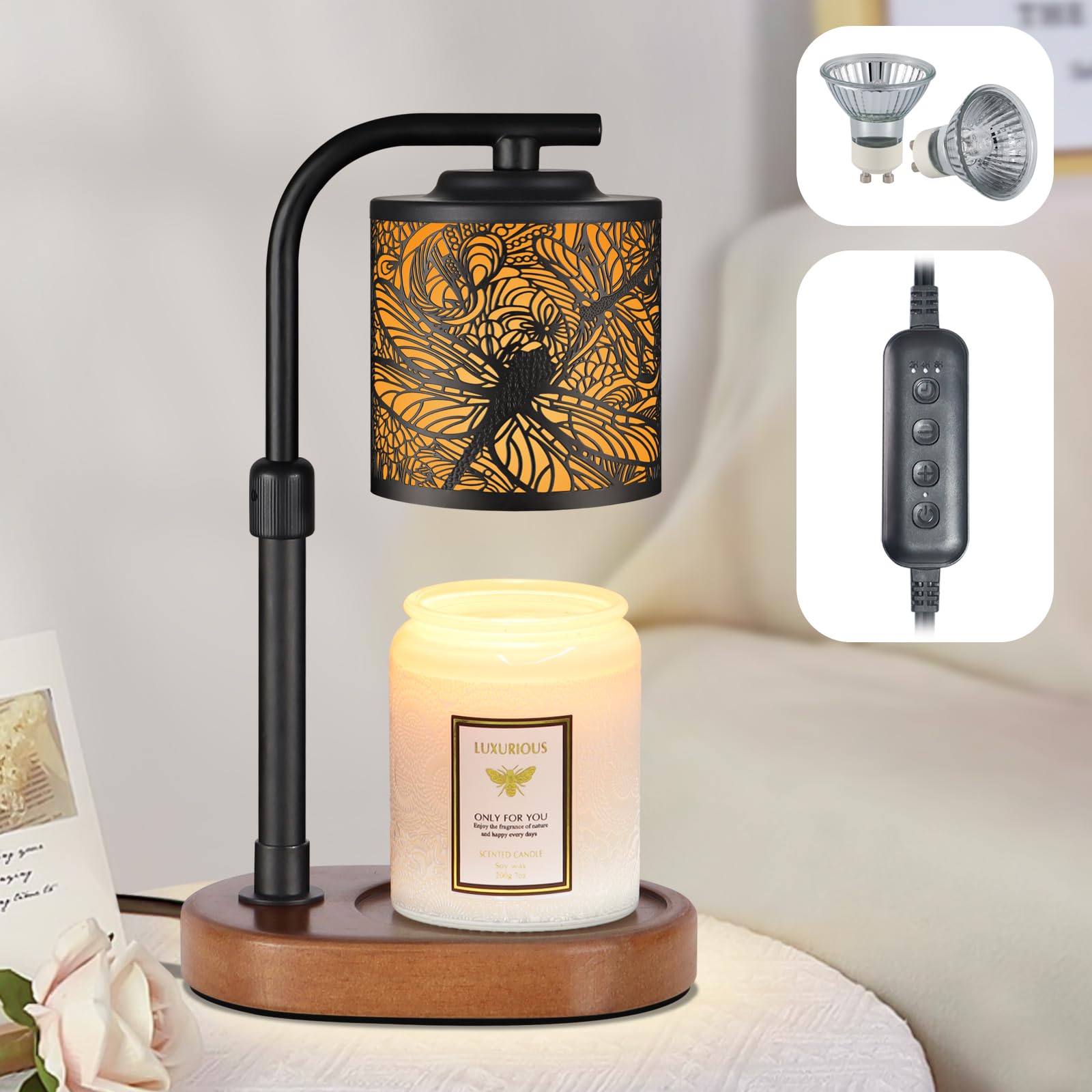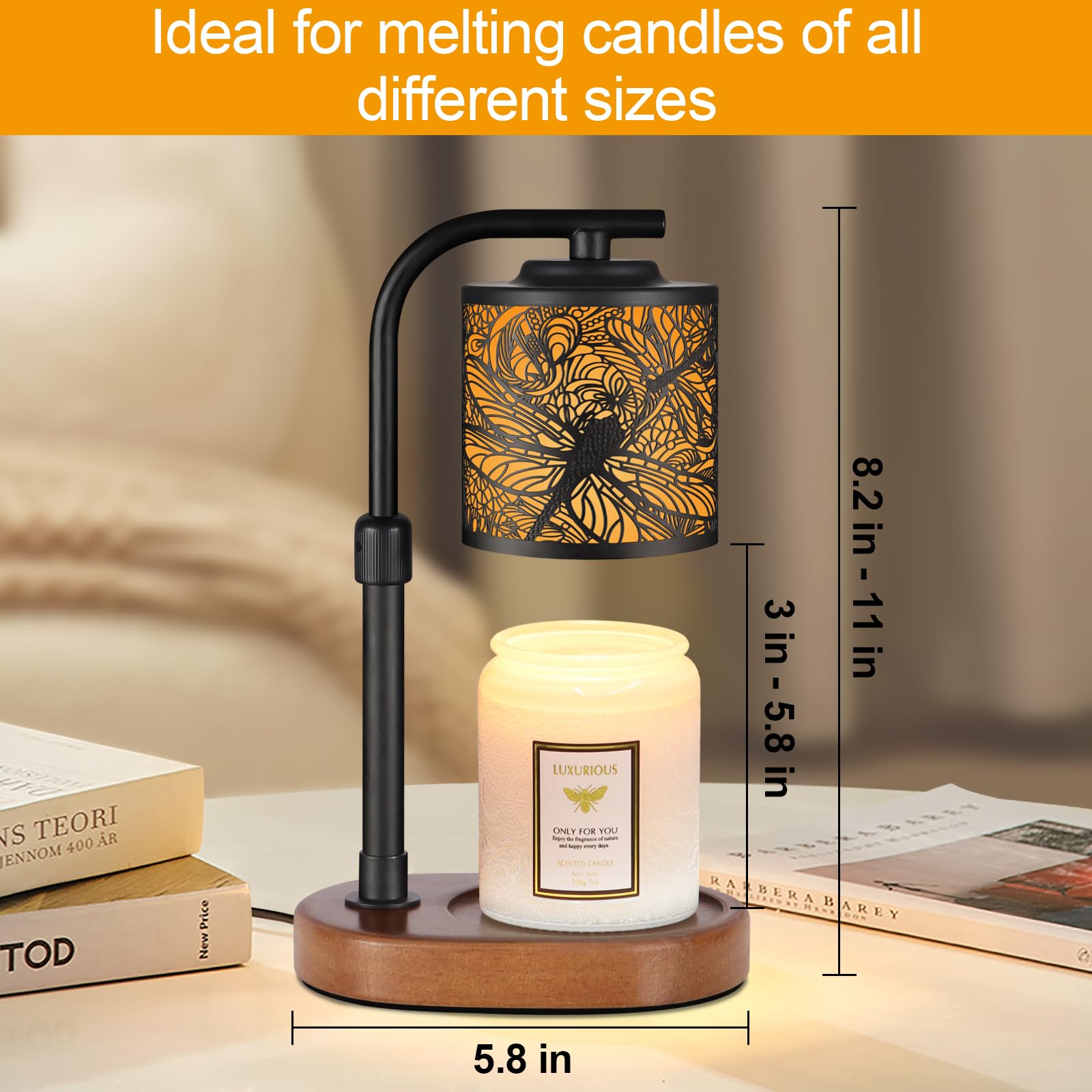 Blend of Classic and Modern Design: Our Candle Warmer Lamp design combines classical and modern elements, The candle warmer is topped with a metal shade with a beautiful dragonfly pattern.,making it an exquisite home decor item. Whether placed in the living room, bedroom, or office, it adds a unique charm to any space.