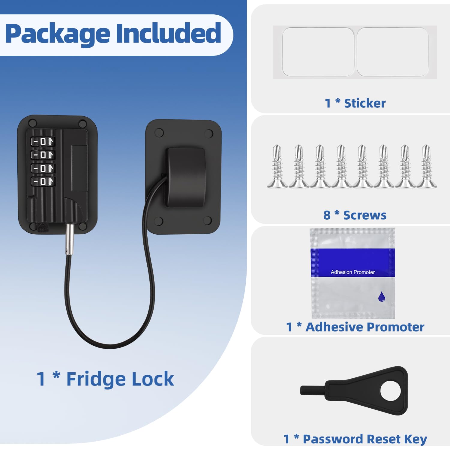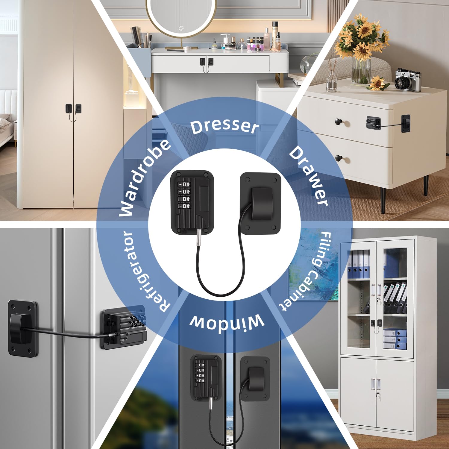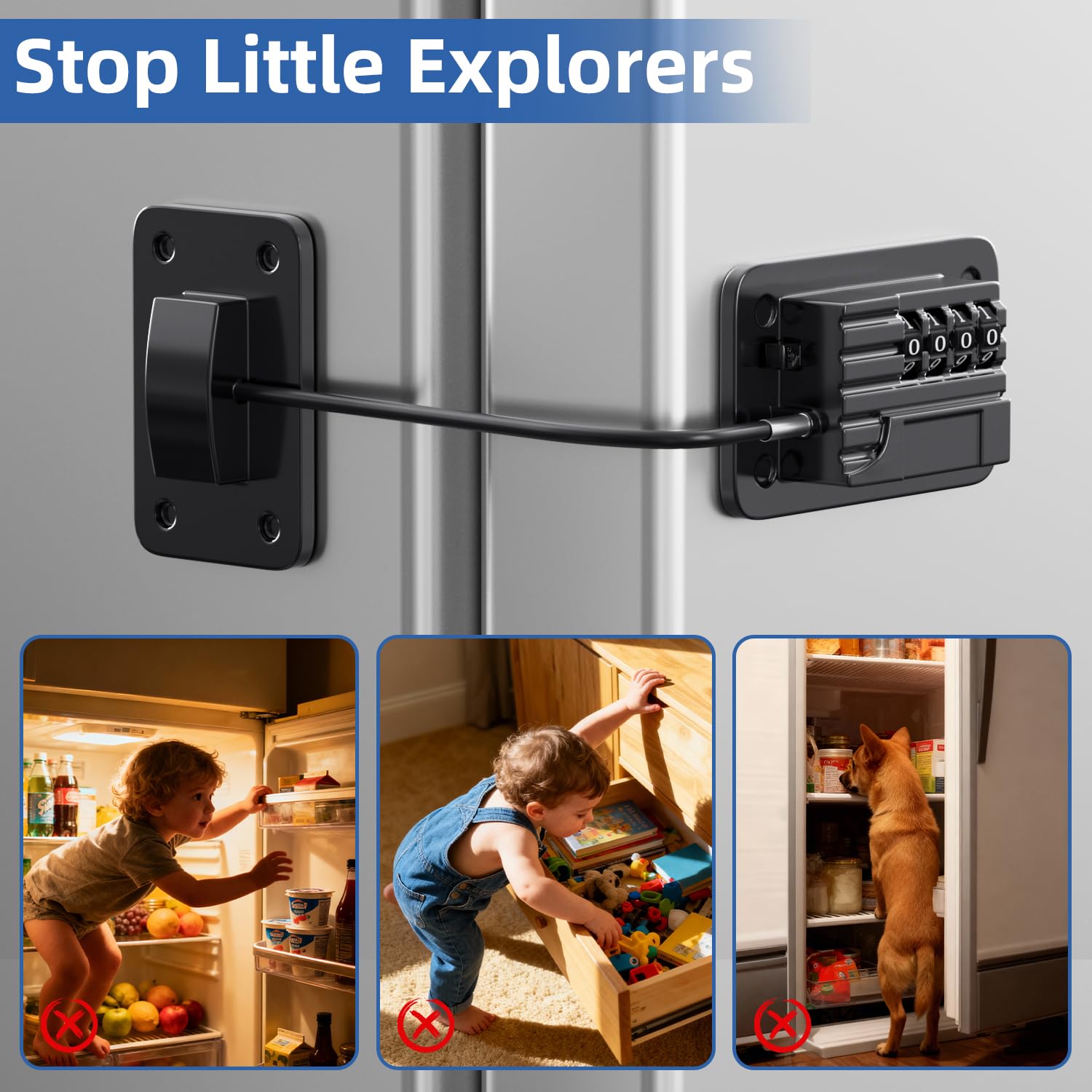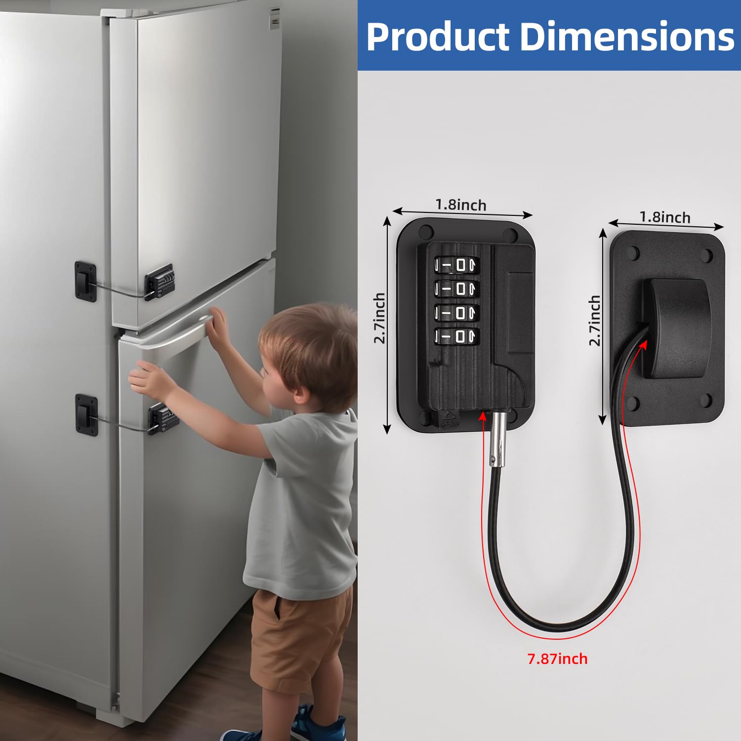 Universal Safety Solution: Effortlessly secure refrigerators, cabinets, drawers, and more with our sturdy adhesive lock—no drilling or tools required