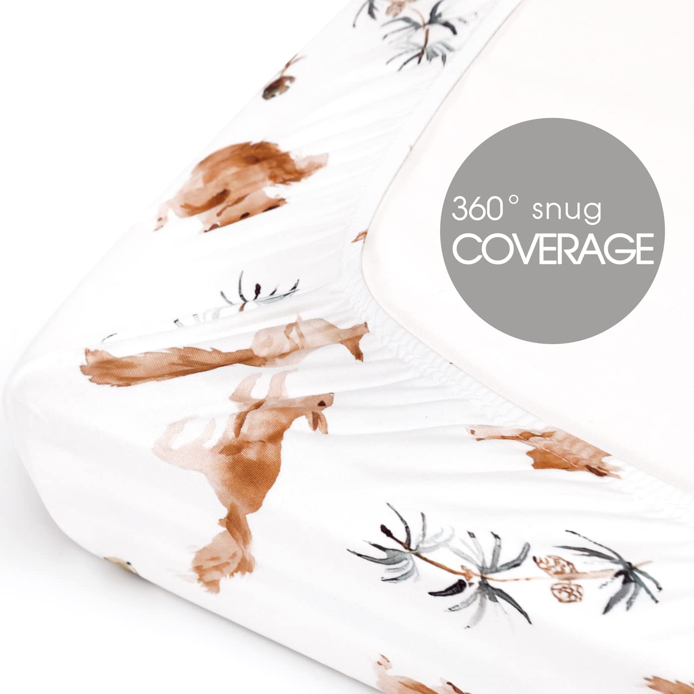 Universal Fit – Measuring 38" x 24" x 6". Our mini baby crib sheets come with an elastic band all around the sides to securely fit all standard pack n play mattresses. They are very easy to put in place even when you need to change pack n play mattresses sheets in a hurry. Perfect as a baby shower gift or for your own nursery.