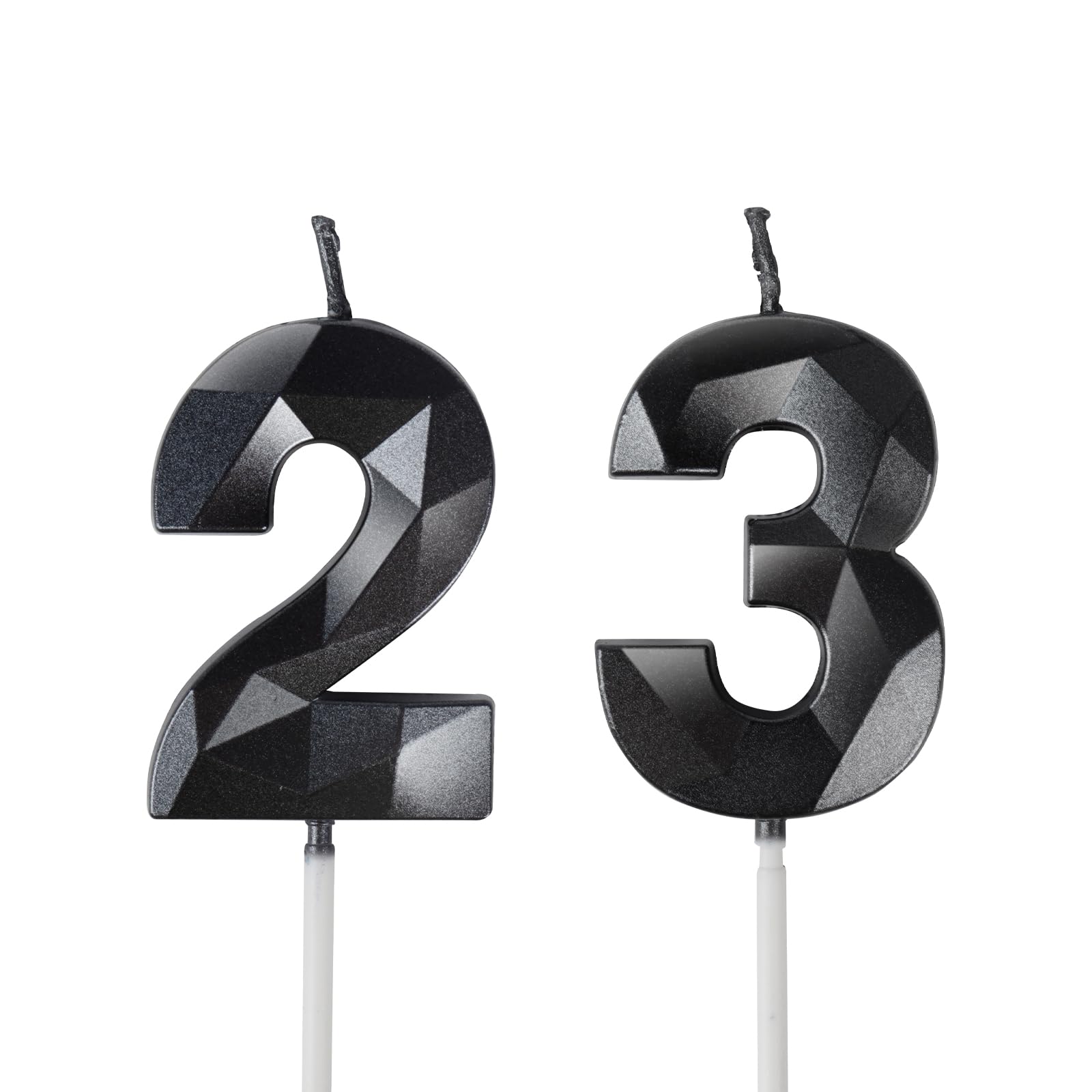 23th Birthday Candles,Number 23 Candles,Black Happy Birthday Candle for Cake,3D Design Cake Topper Decorations for Women Men Birthday Party Wedding Anniversary Celebration Supplies Features: 3D Delicate appearance: The happy birthday cake candles are meaningful for you to celebrate your birthday and nice cake topper decoration for embellishing your cake and cupcake, bright glow for creating romantic atmosphere and adding a touch of elegant. Adapt to the venue: Ideal cake decoration for many occasions, such as birthdays, pet birthdays, baby showers, anniversaries, retirement parties, family reunions, weddings, Hawaiian parties, even Christmas, must-have items for party cake, bring you memorable and meaningful party. Specifications: Quantity: 2 piece Material: wax, plastic Candle length: approx. 5 cm/ 1.97 inch Total length: approx. 11.5 cm/ 4.5 inch Color: as pictures shown Package includes: 1 x Black Number 2 and 3 Numeral Cake Candles Warm notices: Please allow little error on the size due to manual. Do not leave the lighted candles unattended. Please place candles out of reach of children. And please do not light candles on or near flammable materials. Please keep the candle away from the fire when not in use, when burning, adult's supervision is needed.