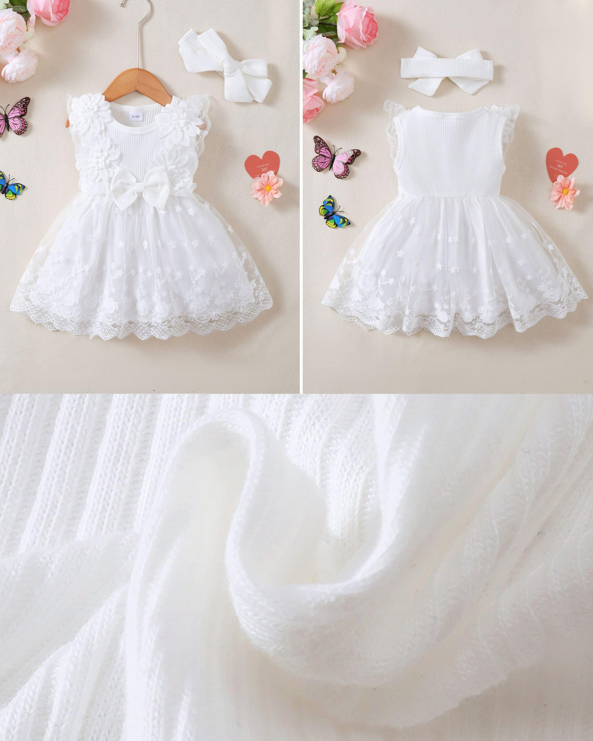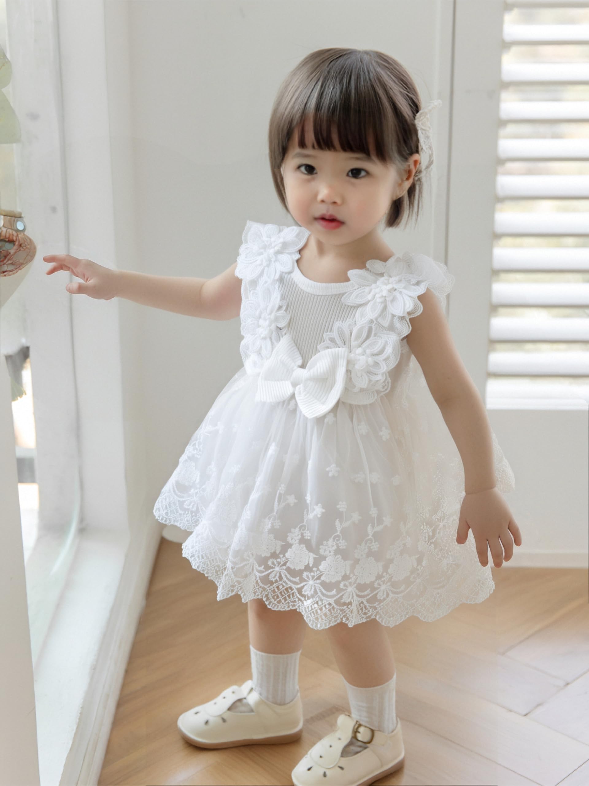 【Elegant Design for a Magical Look】This dress combines classic elegance with playful details, featuring a tulle tutu skirt, lace accents, and a large bowknot, an untied headband accessory that requires tying, allowing for a customizable fit.The sleeveless sundress style is perfect for warmer daysy.