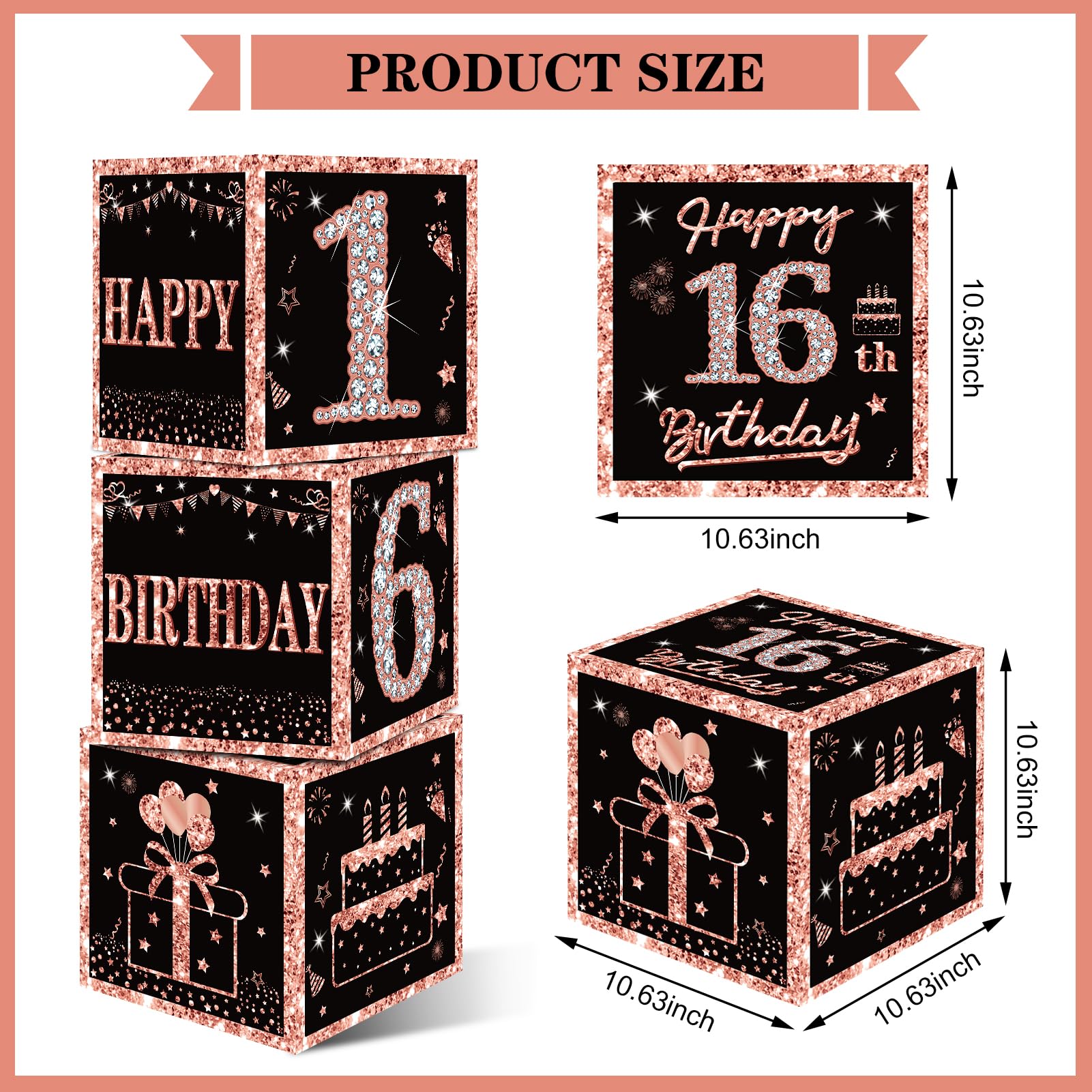 [You Will Receive] -3pcs rose gold 16th birthday balloon boxes decorations, the size of each box is 11.8Γ11.8Γ11.8inch. This set of great 16th birthday party display decorations. (Note: This set of decorations does not include balloons).