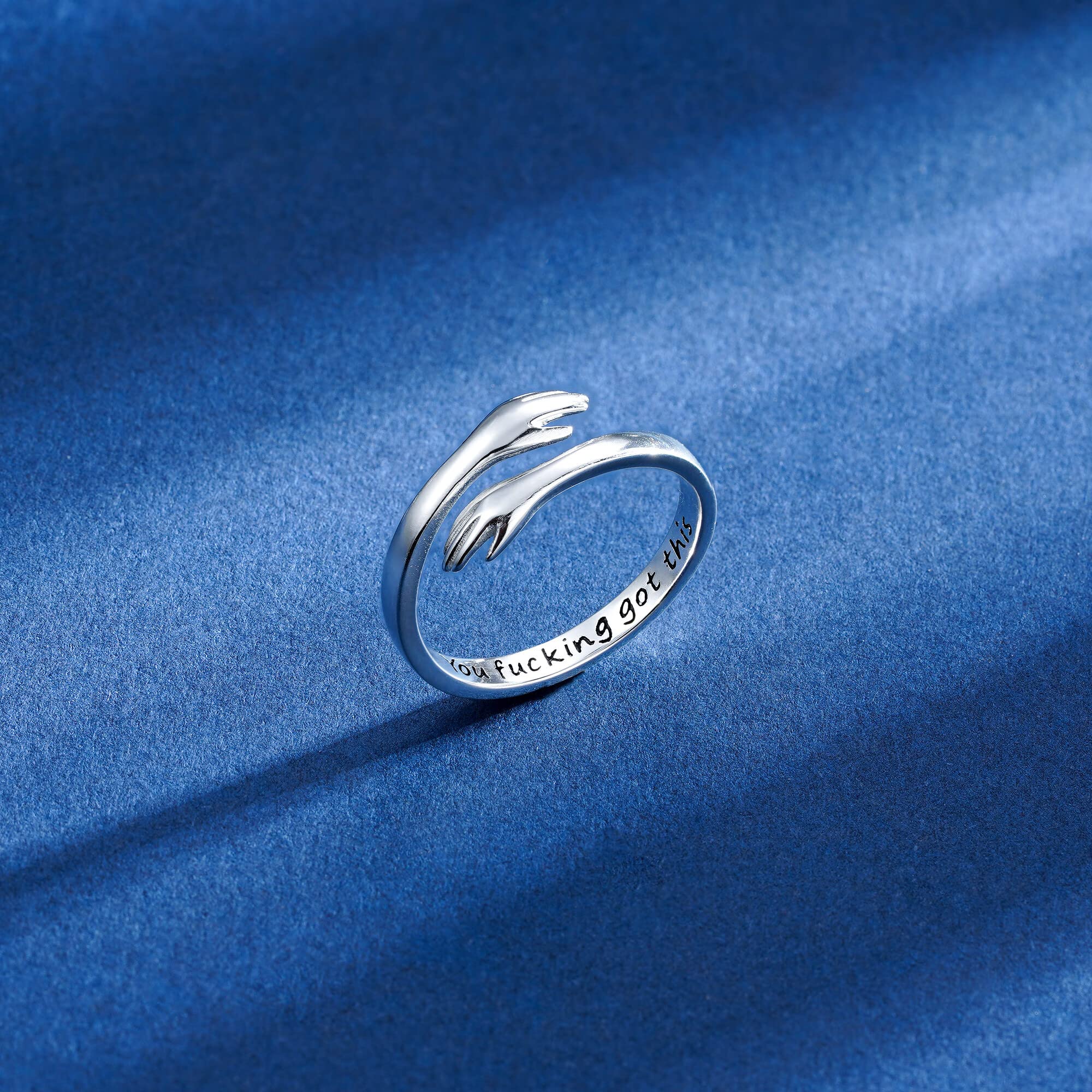 A hug is a symbol of comfort, encouragement, love, and protection. Engraved βYou fucking got thisβon arms to endow a unique meaning to this hug ring.It means wherever you are I will be always with you like this hug ring hugging you forever.