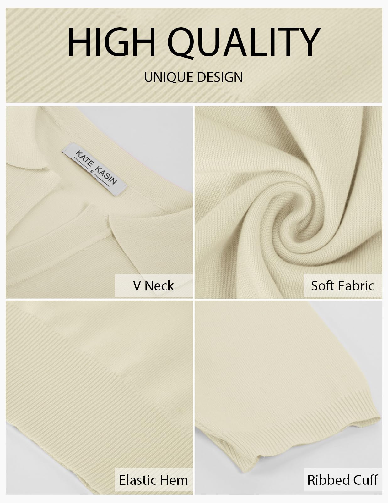 Features: V-neck short-sleeved, loose, casual, ribbed knit pullover. The classic lapel sweater never goes out of style