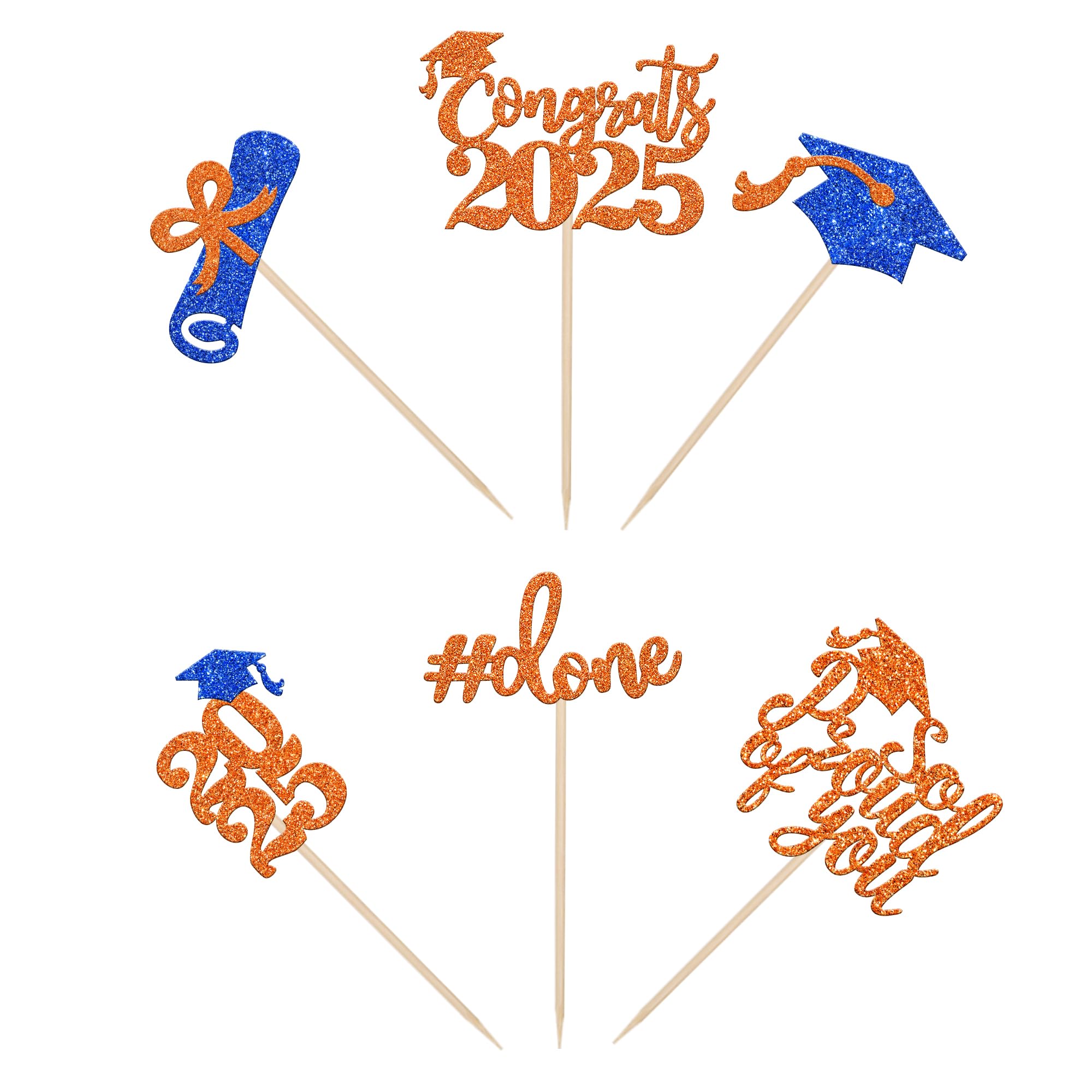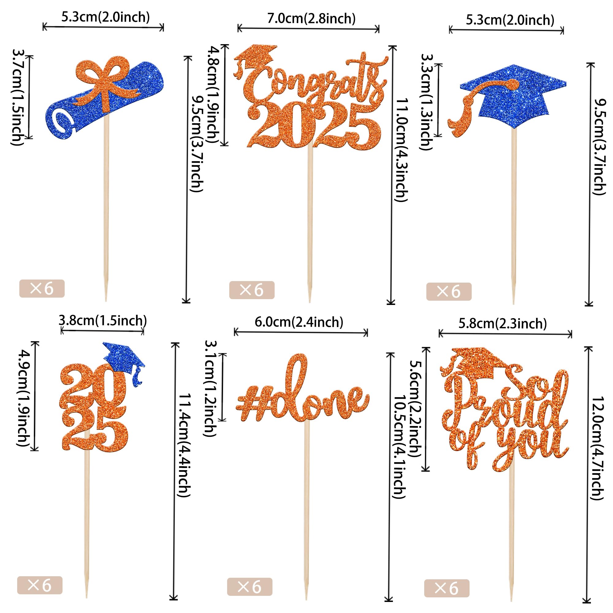 2025 Graduation Done Cupcake Toppers Congrats Class of 2025 Diploma Grad Cap Cupcake Picks So Proud of you Cake Decoratiosn for 2025 Graduation Theme Party Cake Decorations Supplies Perfect for 2025 graduation theme party cupcake decorations, such as kindergarten, primary, junior, senior high school, college, Master or Ph.D. graduation. Pack of 36 pcs, 6 pcs of each design. The size is 2*3.7/2.8*4.3/2*3.7/1.5*4.4/2.4*4.1/2.3*4.7 inch ( with stick ) Made of high quality paper card stock,thick and thick and sturdy. These class of 2025 graduation cupcake toppers are single glitter, the back is white, and they are intended for decoration only, please do not put them in oven or microwave. If the item you received has any defects, please contact us immediately. we will deal with it within 24 hours.