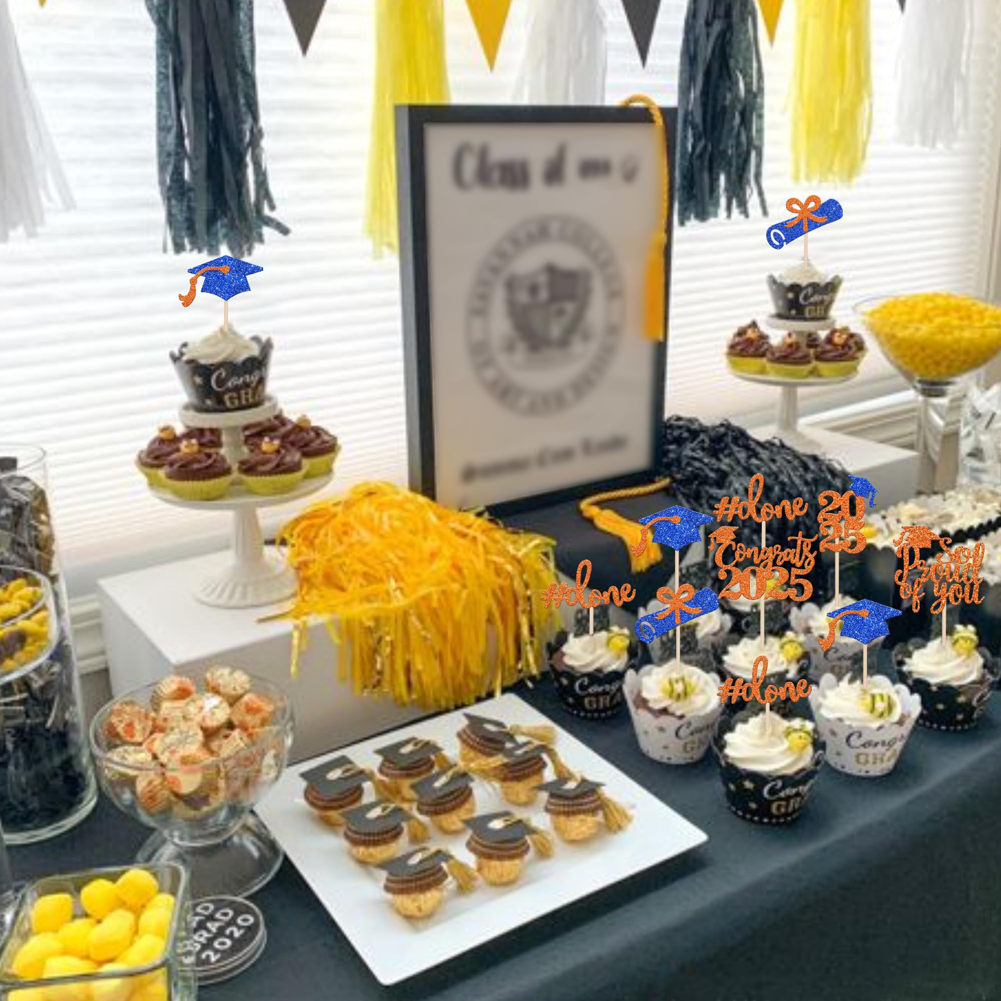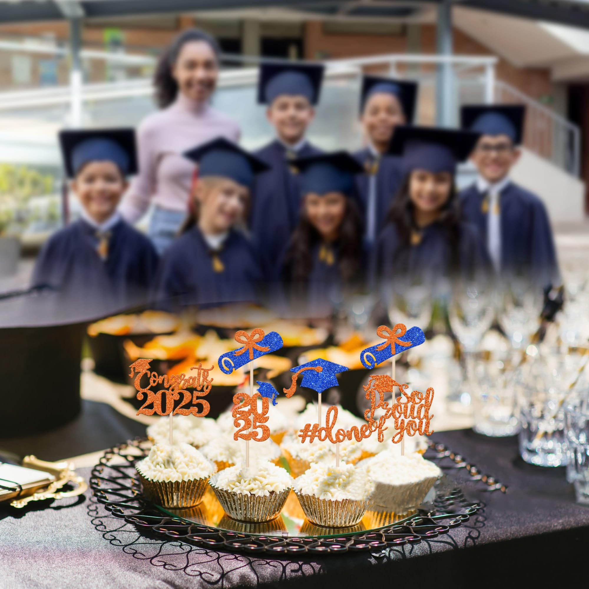Wide Usages ! These 2025 graduation done cupcake toppers are perfect for 2025 graduation theme party cupcake decorations, such as kindergarten, primary, junior, senior high school, college, Master or Ph.D. graduation, they can make your cupcake more attractive and bring the fun to your party.You can also apply them for ice cream, fruits, cookies and other desserts.