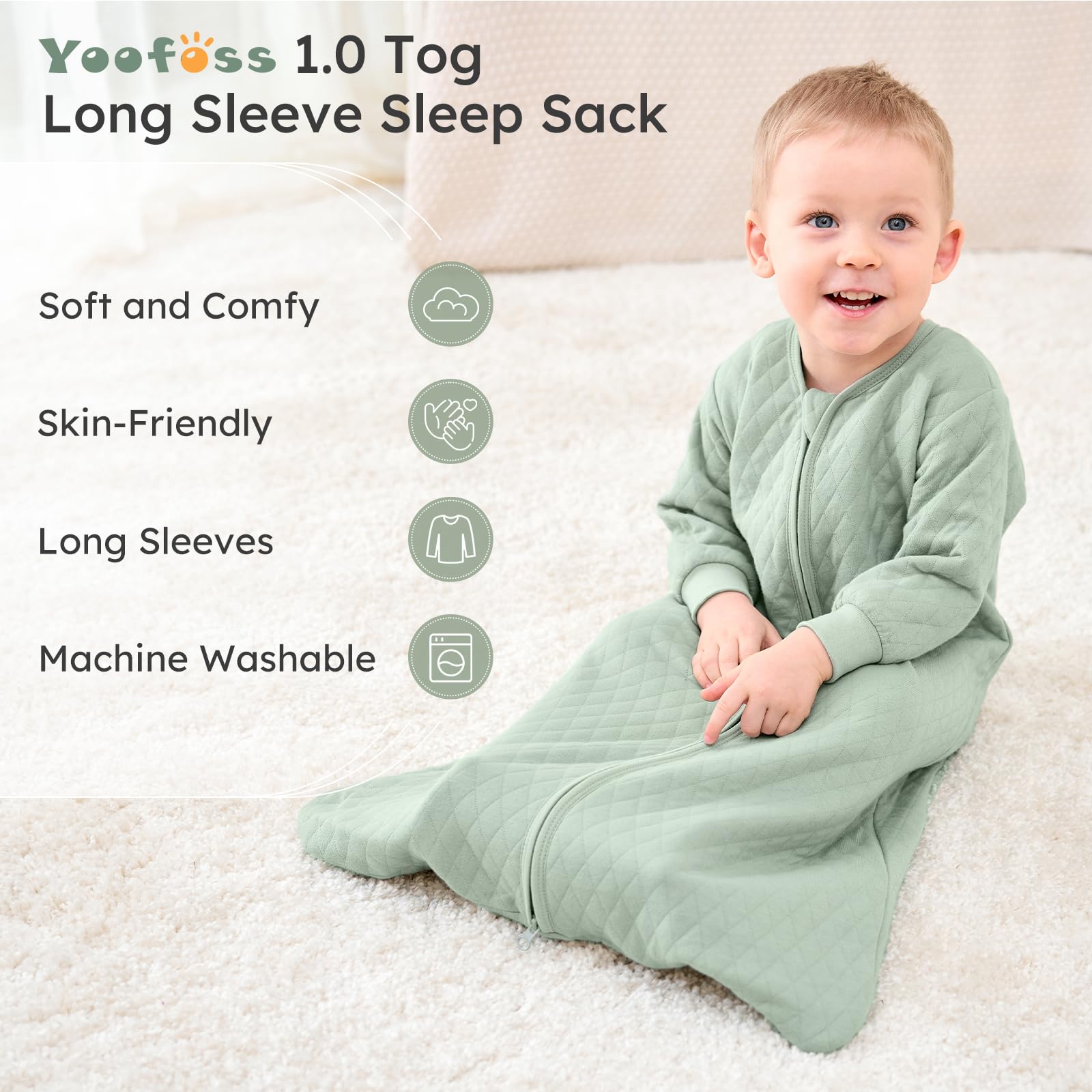 Safe and Comfort: Made of organic cotton fabric and fluffy polyester filling, our sleep sack ensures the utmost comfort and the protection of toddler's sensitive skin. Yoofoss baby sleep sack with sleeves is Certified by the Global Organic Textile Standard (GOTS), we prioritize your baby’s comfort and safety.