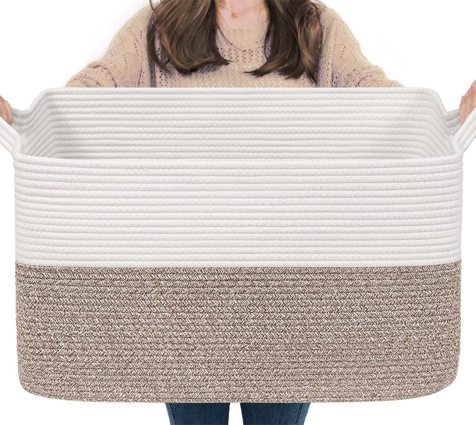 Note: The large cotton rope baskets are folded for delivery, so the basket you receive may have creases. Ironing or filling the basket with a blanket is a good idea to solve the crease