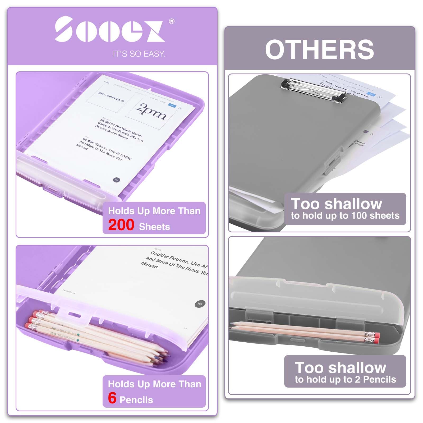 High Capacity: Equipped with both a paper storage component that holds twice as much paper as other clipboards and a built-in pencil case. The high-capacity medical clipboard can securely hold up more than 200 letter-sized documents, and up to 6 pencils.