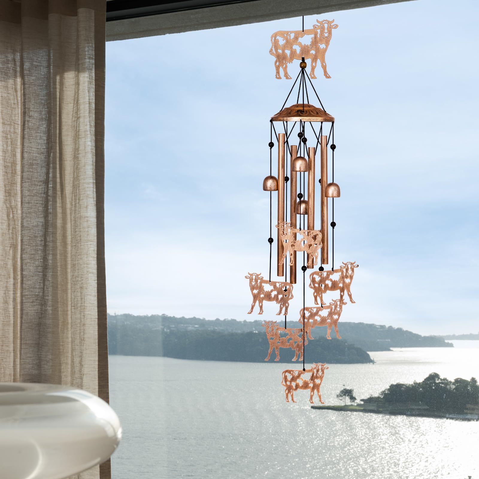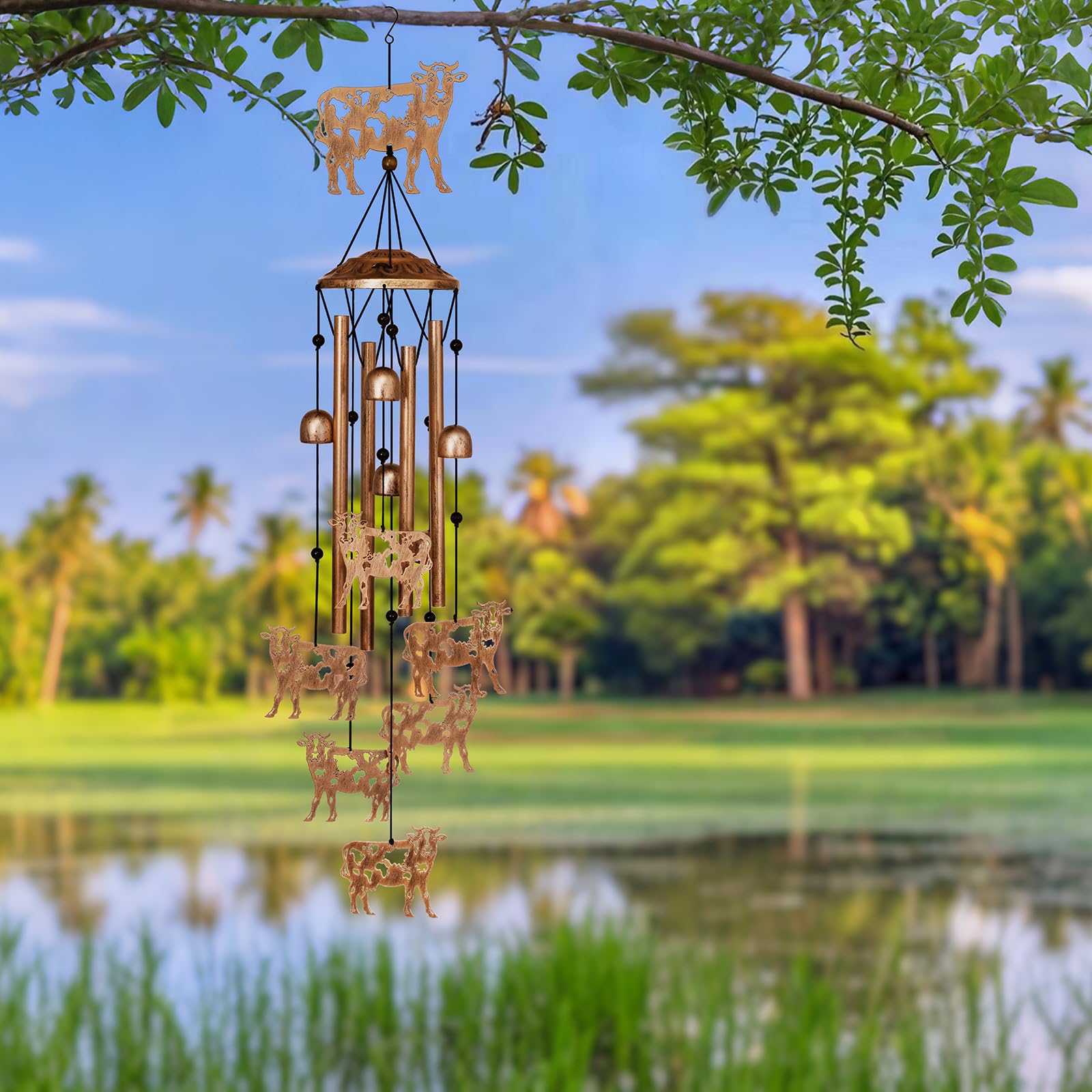 All Weather Durability: Cow windchimes outdoors are made of high quality metal and durable nylon rope, baked and painted, etc., waterproof, sunproof and corrosion-resistant. Aluminum tubing produces a crisp, booming tone superior to other materials, ensuring long-lasting beauty and sound. Designed for year-round outdoor or indoor use, it is evergreen and attractive in all seasons.