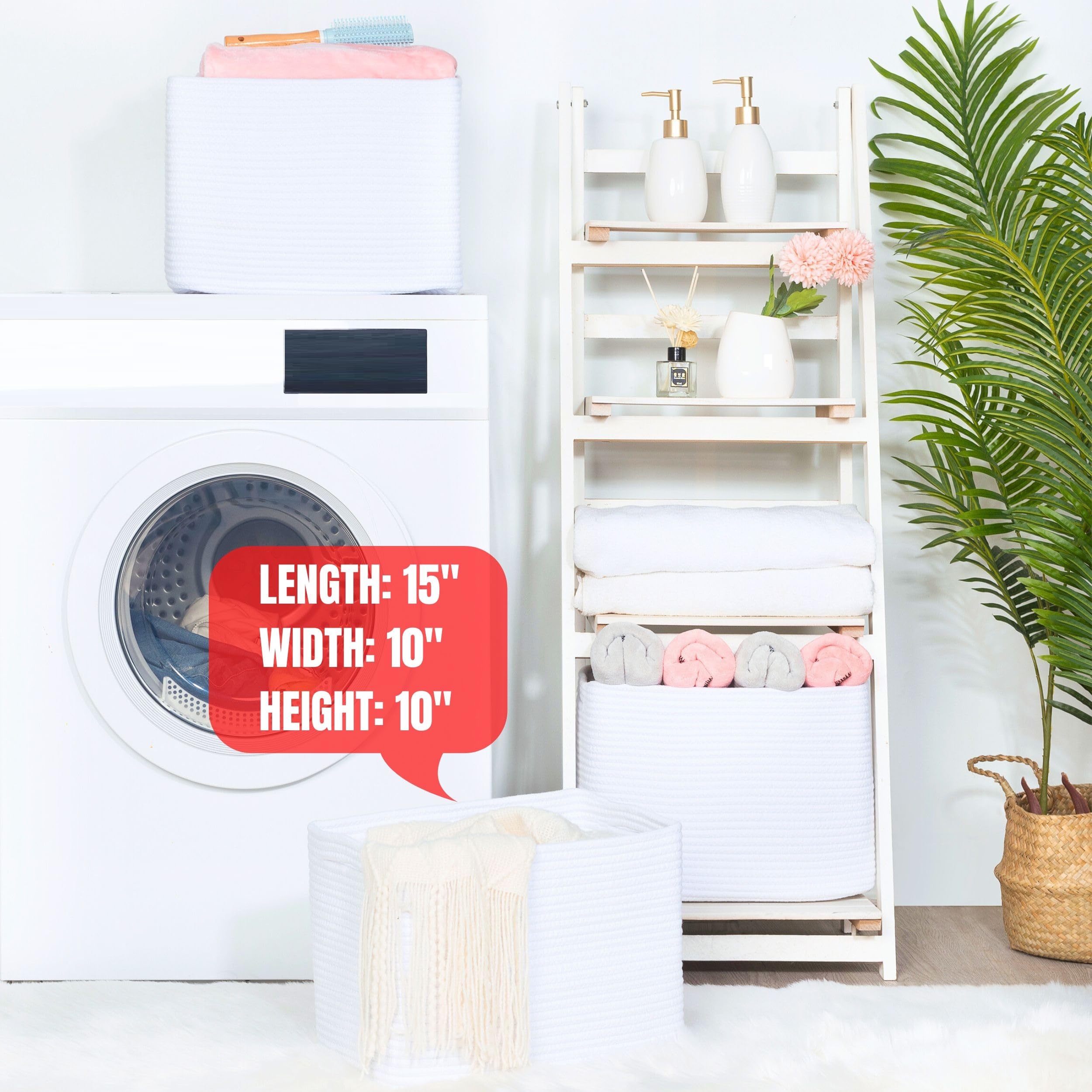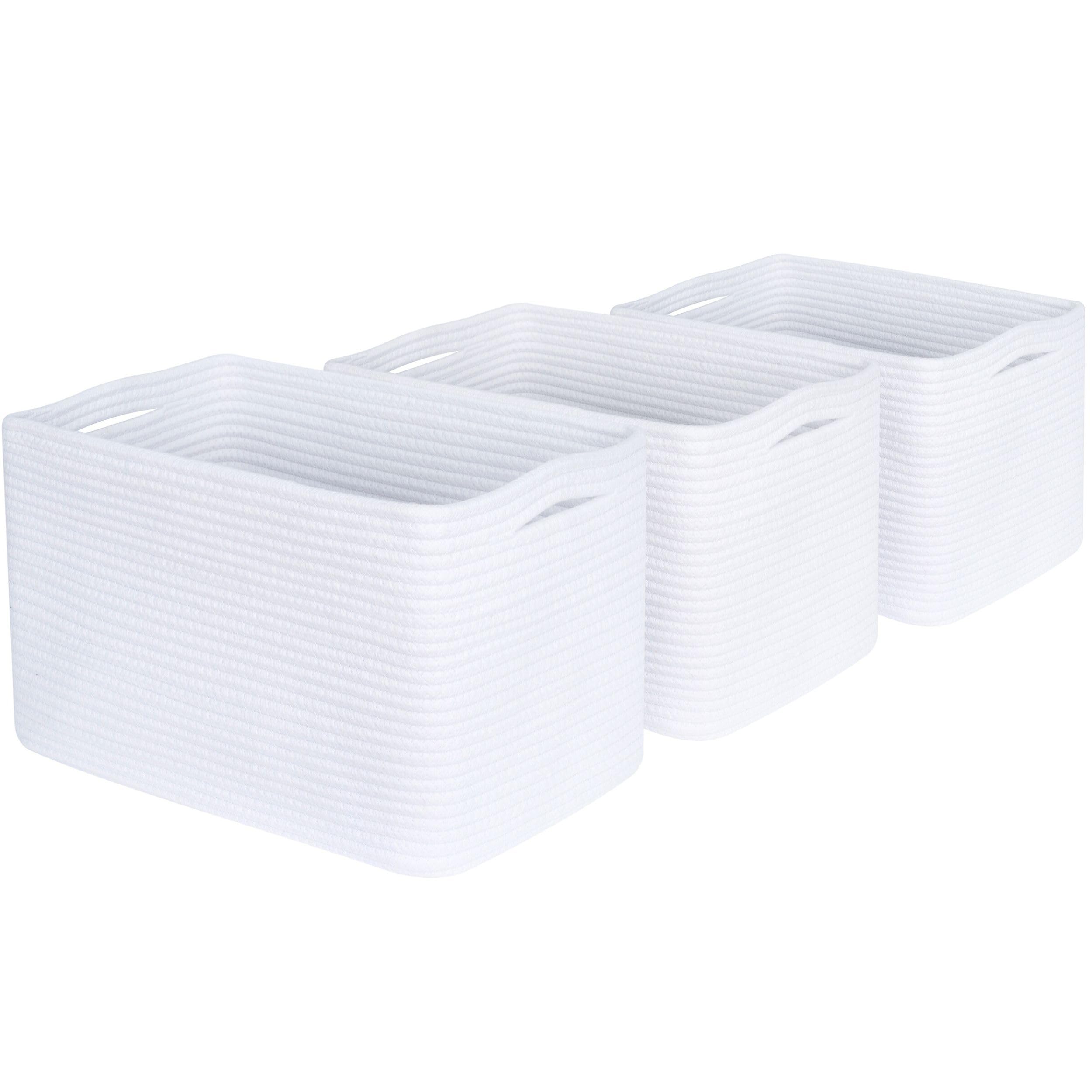 Well-Sized Bins with Elegant Slit Handles - Set of Three (3) Basket Bins: 15" (L) x 10" (W) x 10" (H). Our baskets are handmade with flexible material, which may result in slight size variations. Measurements should be taken from the center of each side to the center of the opposite side after the bins are fully unfolded & expanded. Taking measurements along just one side or when it is folded may result in smaller measurements due to the rounded corners and folding.