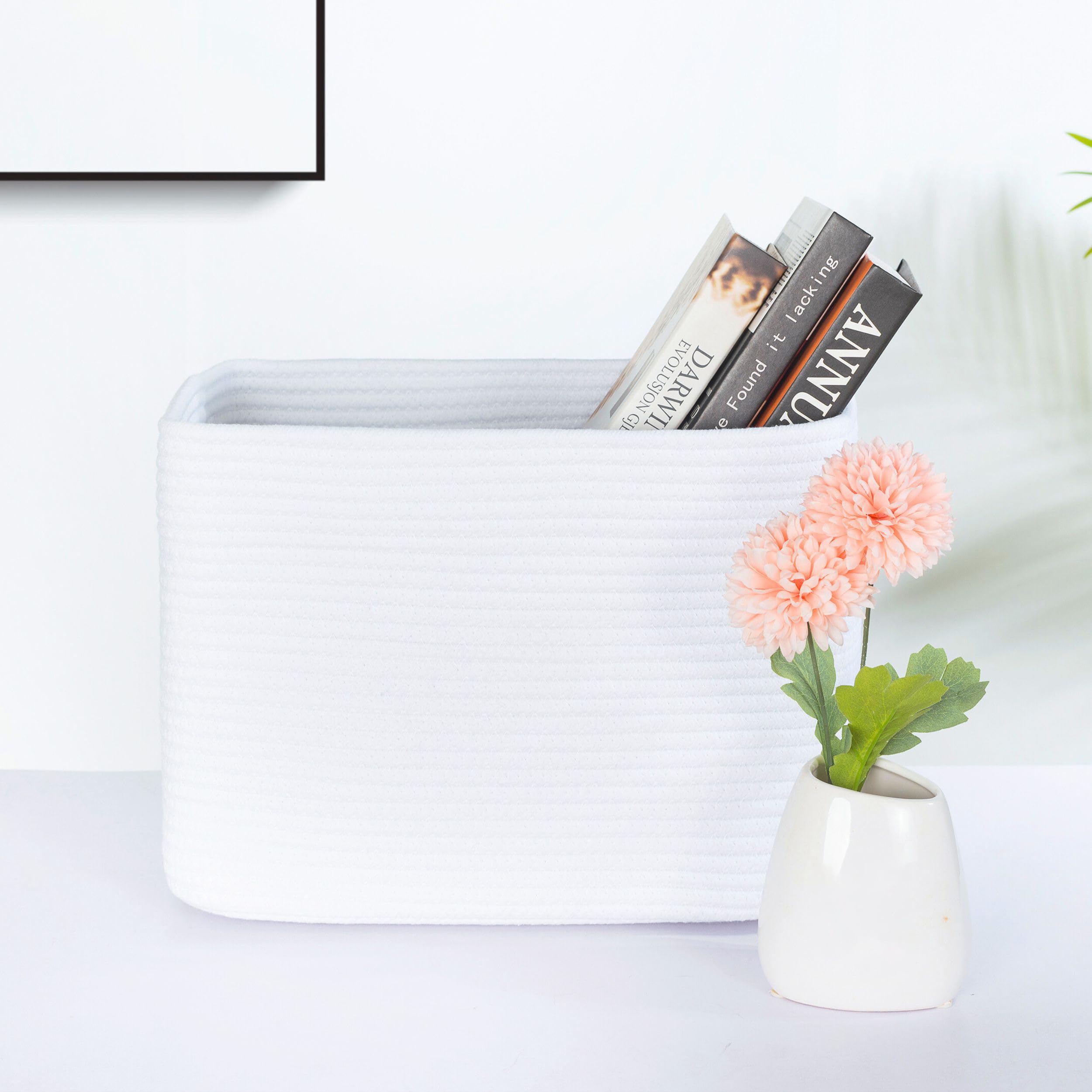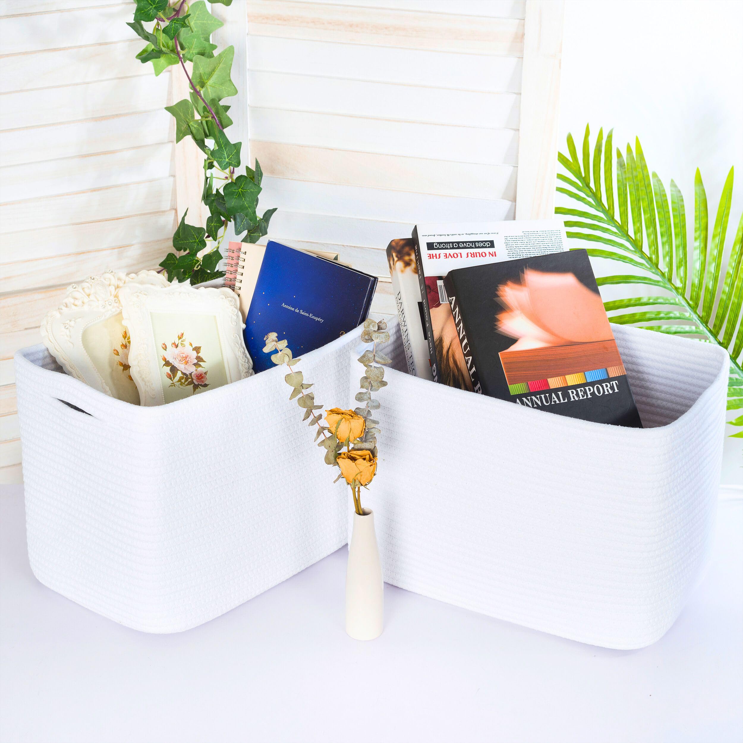 Decorative Cute Woven Baskets - A stylish and practical way to create eye-catching table and counter-top displays. Not only will our basket set help you get organized, but their sleek, sophisticated shape and neutral color will complement any decor. Put them on a nightstand, a bedside table, a nursery side table, walk-in closet, shelves, kitchen countertop, or bathroom vanity top to add character to your rooms while keeping everything organized.