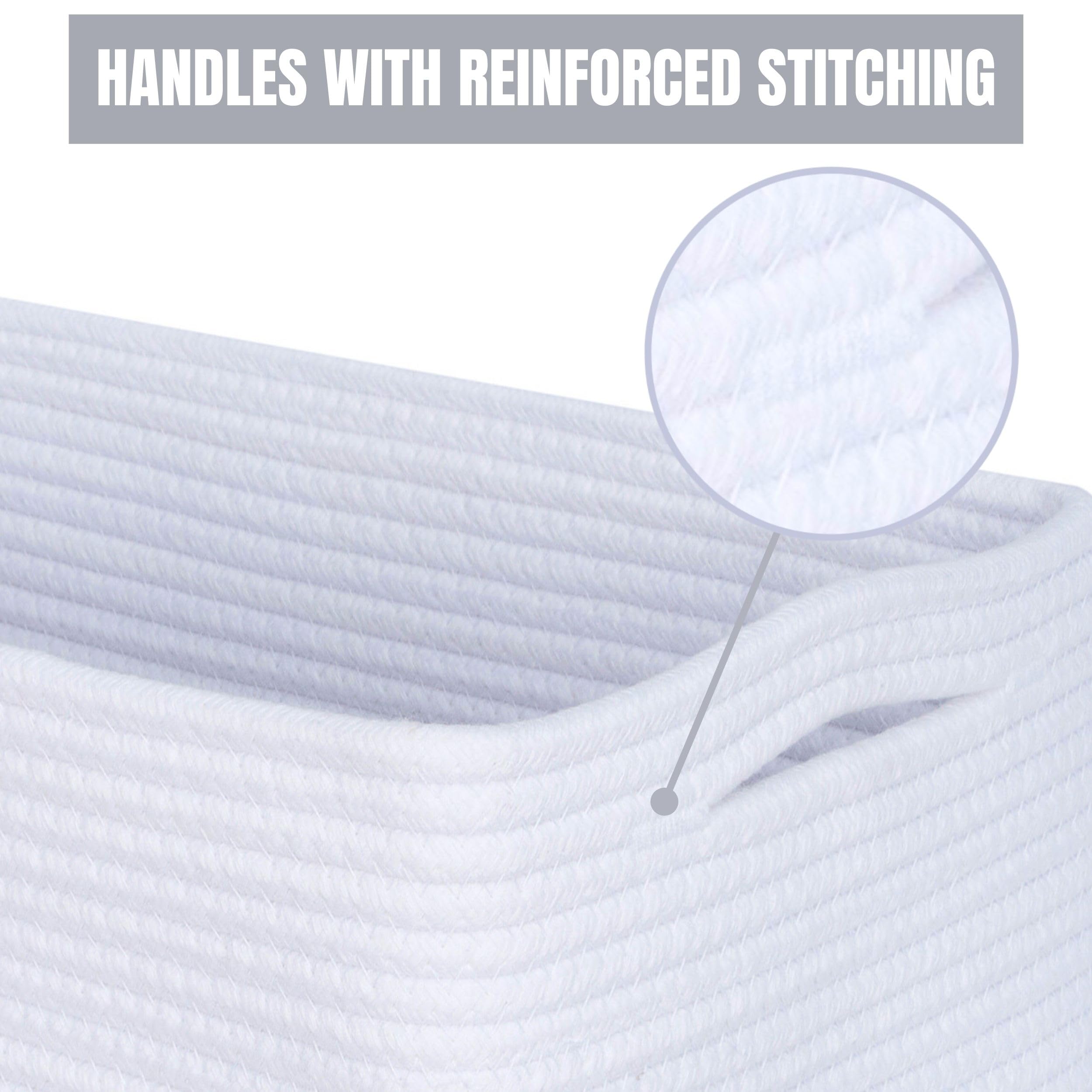Handcrafted & No Sharp Edges - Handmade from premium materials, our baskets are soft to the touch, yet sturdy enough to hold its shape. The workmanship ensures there are no sharp or hard edges to scratch furniture. Use them with complete peace of mind in recreation room, playroom, cat and dog toy, living room, bedroom, nursery room, bathroom, laundry room, mudroom, pantry, arts & crafts room, home office or even garage.