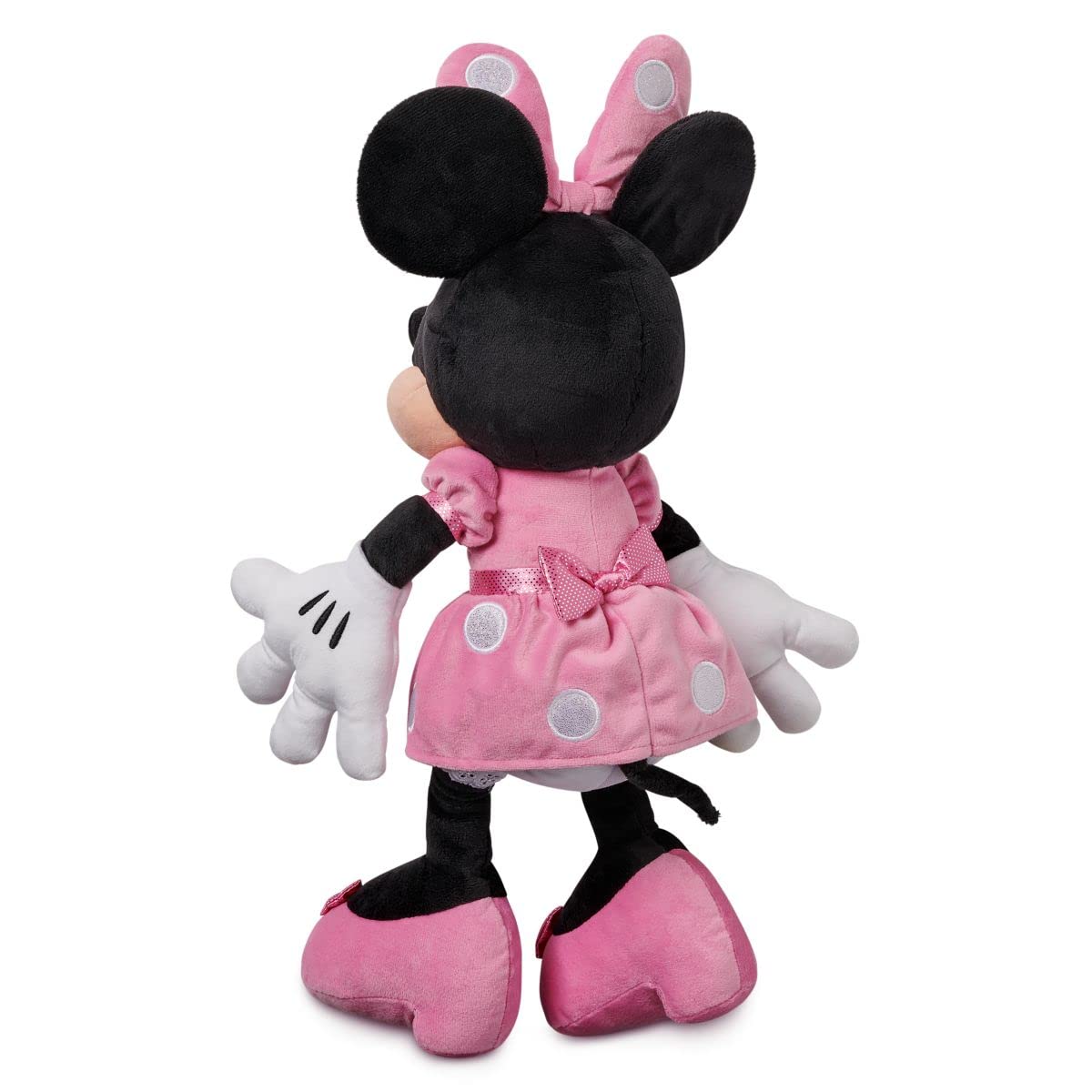 Pink Polka Dot Dress: Dressed in a charming pink polka dot dress, this Minnie Mouse doll is a delightful addition to any collection of Disney stuffed animals. Perfect for Minnie Mouse toys enthusiasts or Disney lovers.