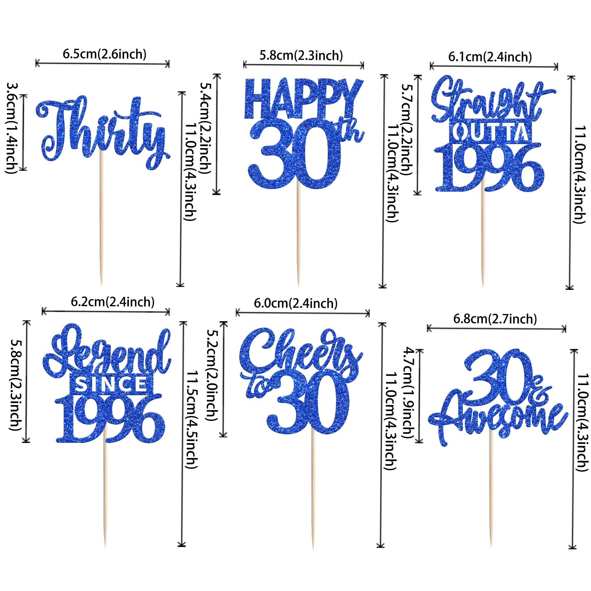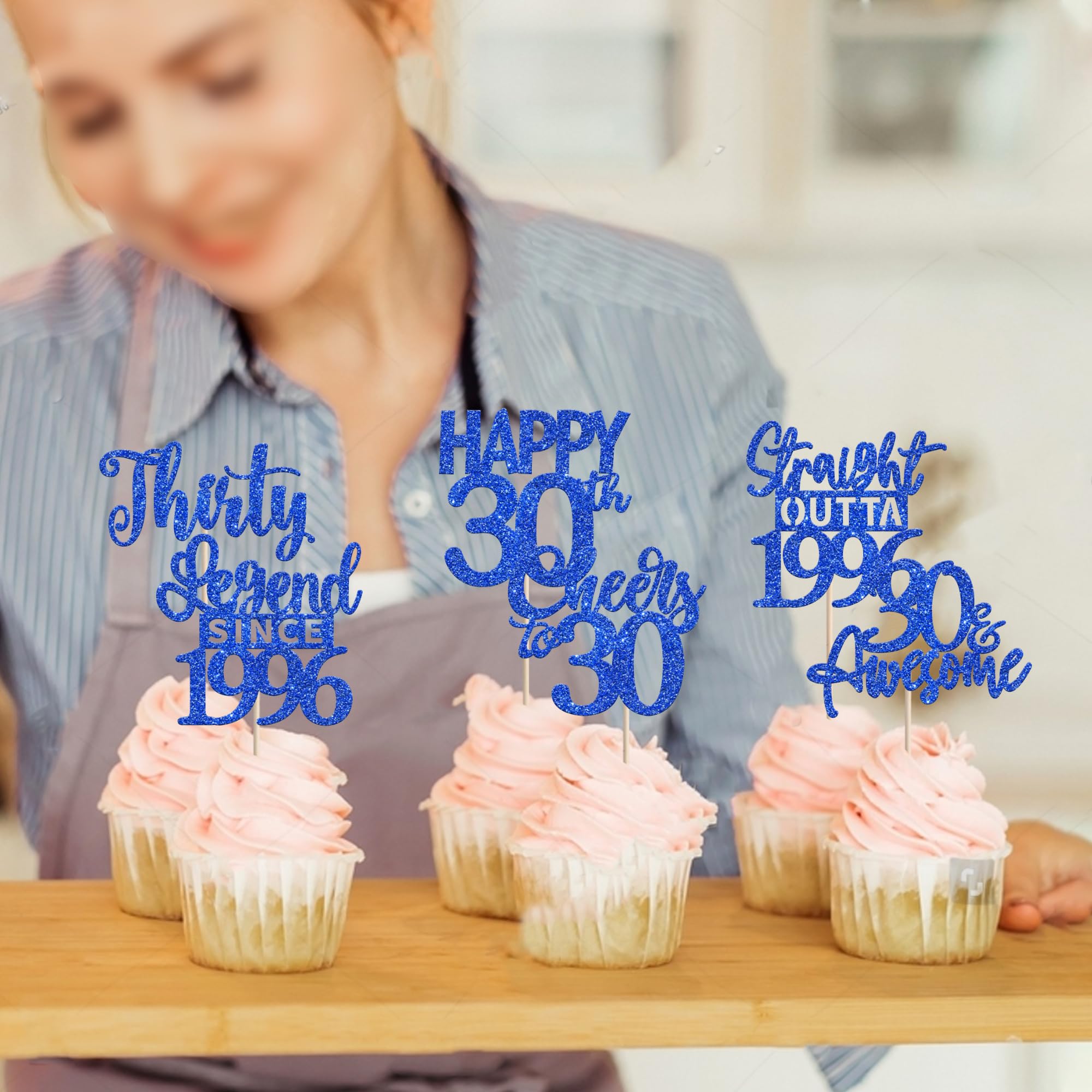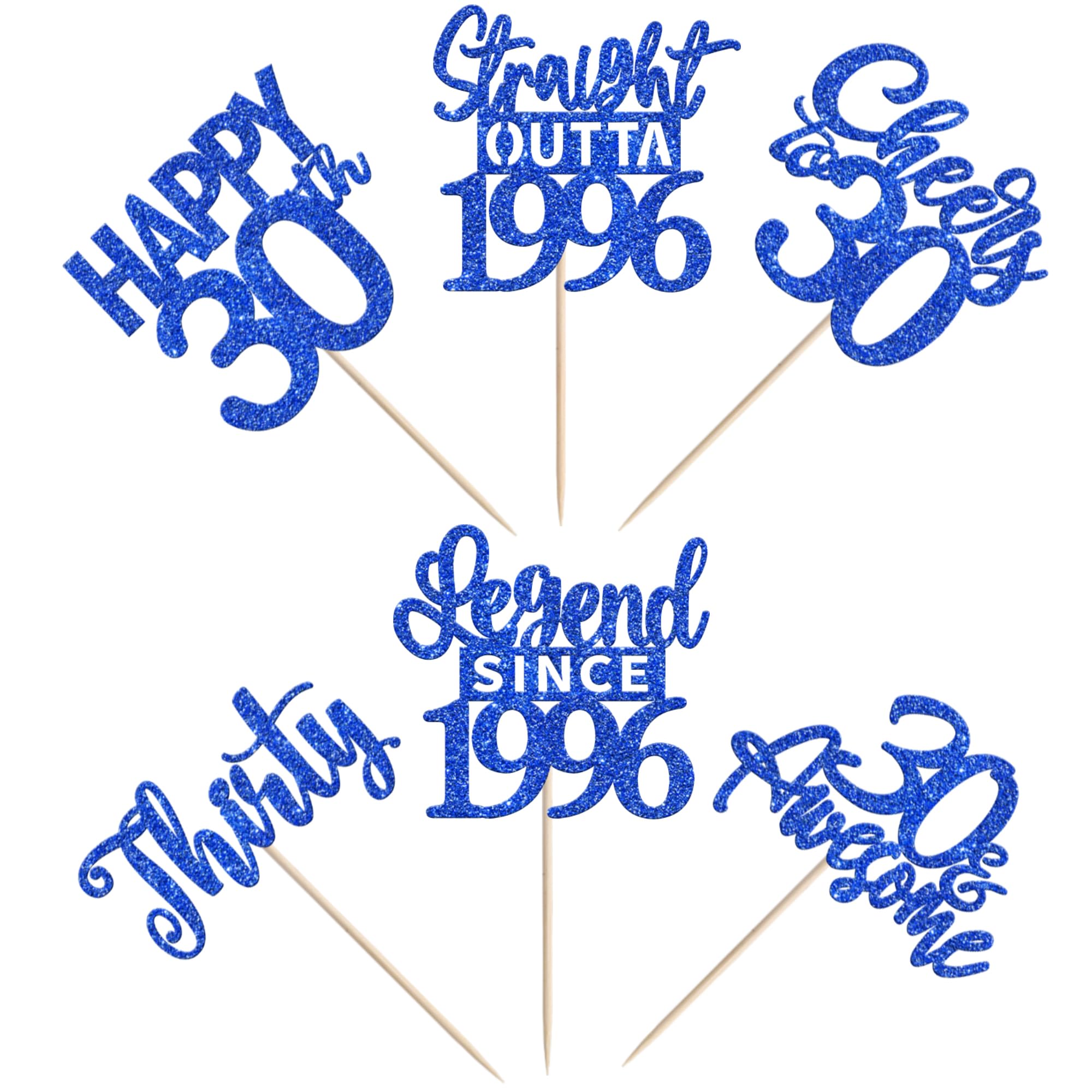 24PCS Happy 30th Birthday Cupcake Toppers Thirty Straight Outta 1996 Cupcake Picks Cheers to 30 Birthday Decorations Lengend Since 1996 Cupcake Decorations for 30th Birthday Anniversary Party Cake Decorations Supplies Perfect for legend since 1996 theme party, 30th anniversary theme party,cheers to 30 years theme party, 30 awesome theme party cupcake decorations supplies. Pack of 24 pcs,4 pcs of each design. The size is 2.6*4.3/ 2.3*4.3/ 2.4*4.3/ 2.4*4.5/ 2.4*4.3/ 2.7*4.3 inch ( with stick ) Made of high quality paper card stock,thick and sturdy. These straight outta 1996 cupcake toppers are one side glitter, another side is white, and they are intended for decoration only, please do not put them in oven or microwave. If the item you received has any defects, please contact us immediately.we will deal with it within 24 hours.