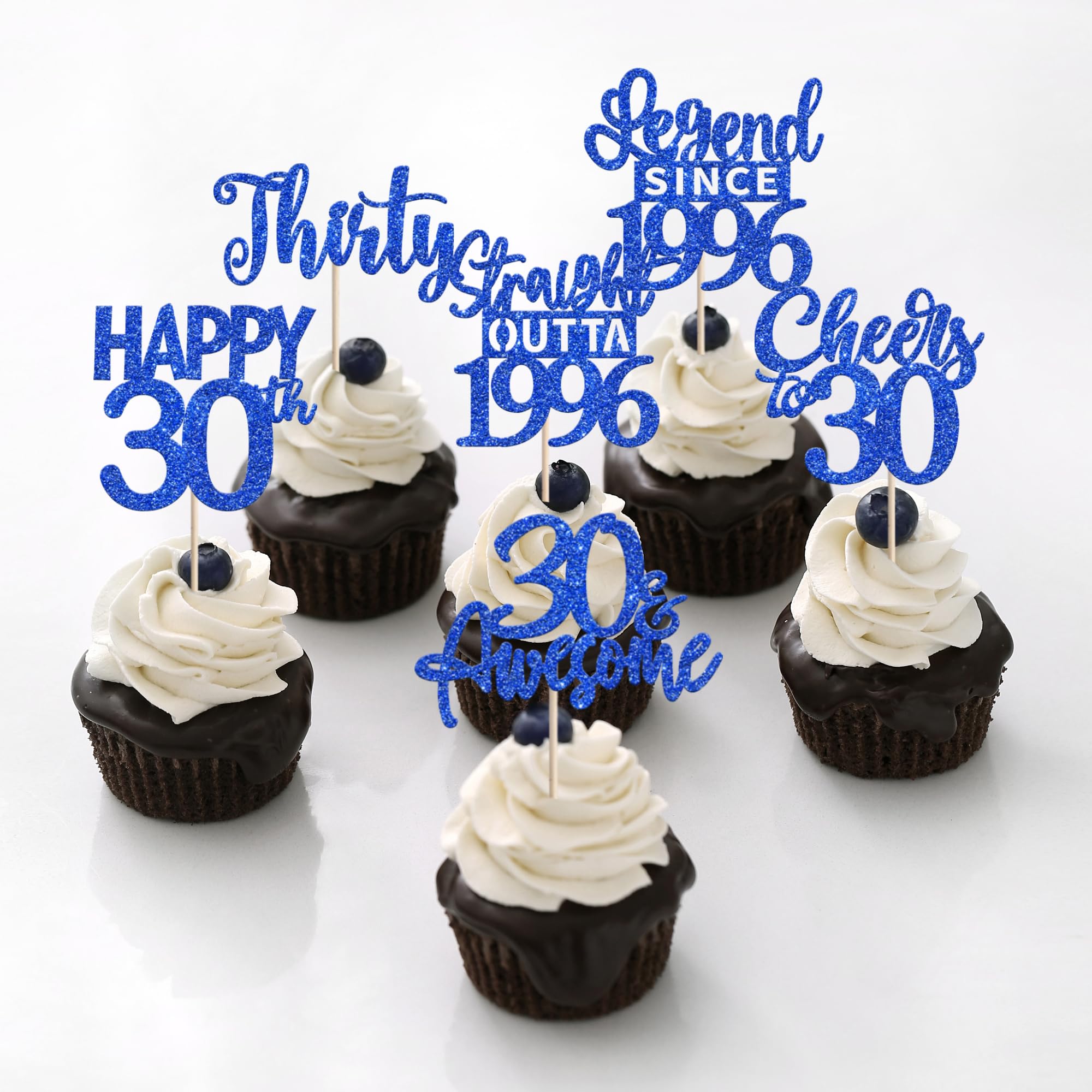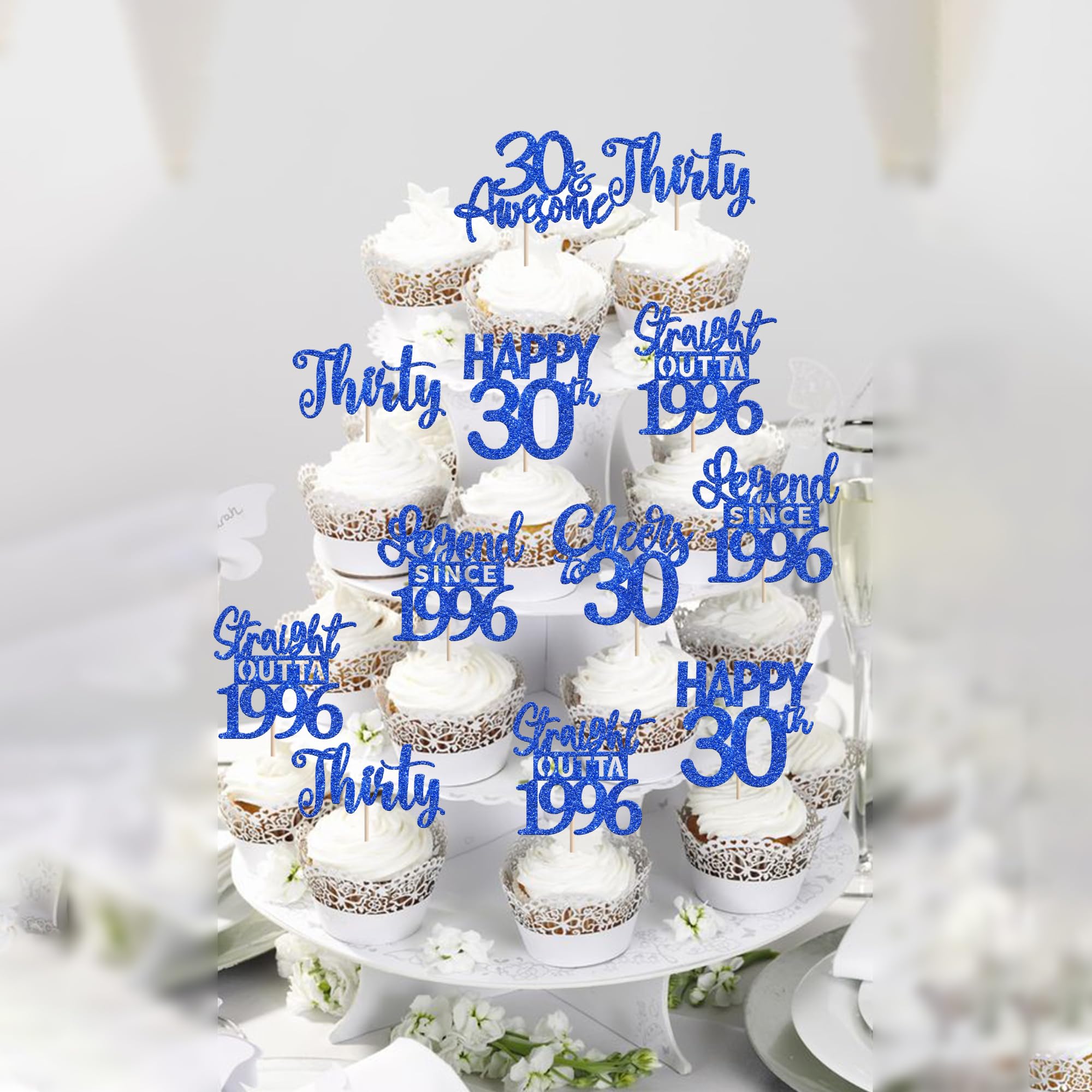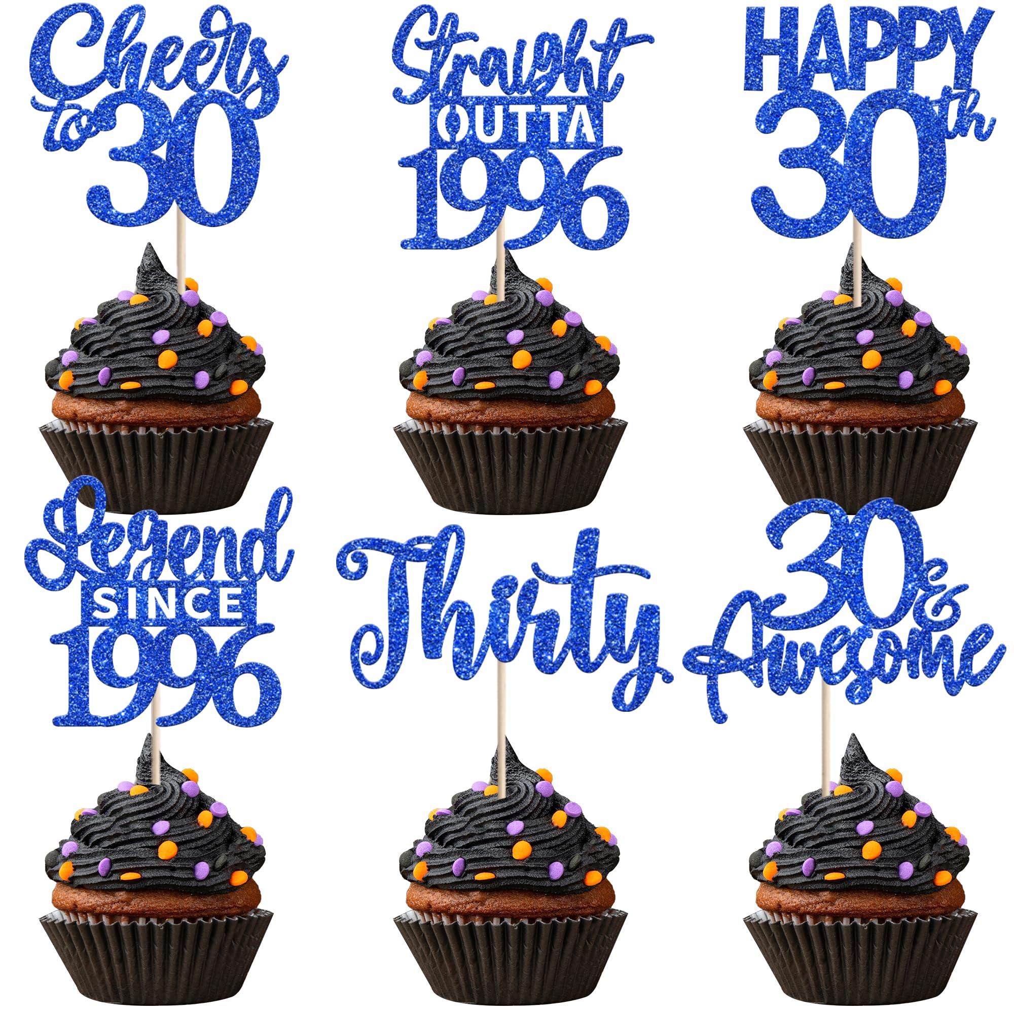 24PCS Happy 30th Birthday Cupcake Toppers Thirty Straight Outta 1996 Cupcake Picks Cheers to 30 Birthday Decorations Lengend Since 1996 Cupcake Decorations for 30th Birthday Anniversary Party Cake Decorations Supplies Perfect for legend since 1996 theme party, 30th anniversary theme party,cheers to 30 years theme party, 30 awesome theme party cupcake decorations supplies. Pack of 24 pcs,4 pcs of each design. The size is 2.6*4.3/ 2.3*4.3/ 2.4*4.3/ 2.4*4.5/ 2.4*4.3/ 2.7*4.3 inch ( with stick ) Made of high quality paper card stock,thick and sturdy. These straight outta 1996 cupcake toppers are one side glitter, another side is white, and they are intended for decoration only, please do not put them in oven or microwave. If the item you received has any defects, please contact us immediately.we will deal with it within 24 hours.