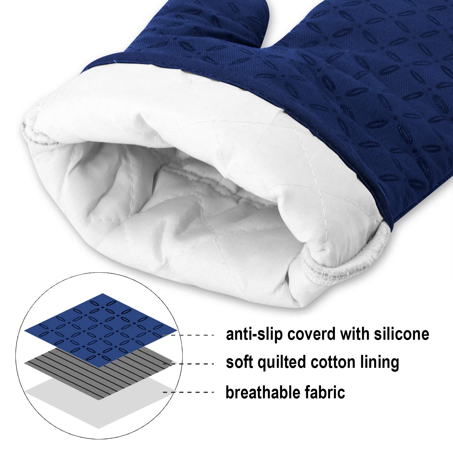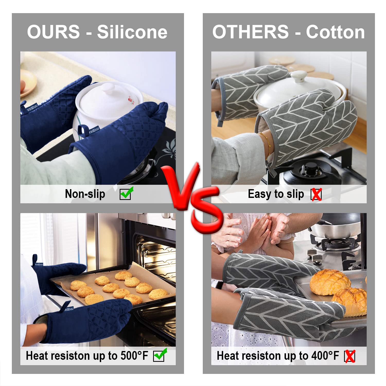 500°F HEAT RESISTANT &NON-SLIP - This oven mitts heat resistant 500 degrees because of the durable construction so it can effectively keep you protected from burning while you enjoy cooking and grilling. Enhanced with anti-slip silicone design to provide a more robust, non-slip grip that can be held securely when handling the kitchen utensils