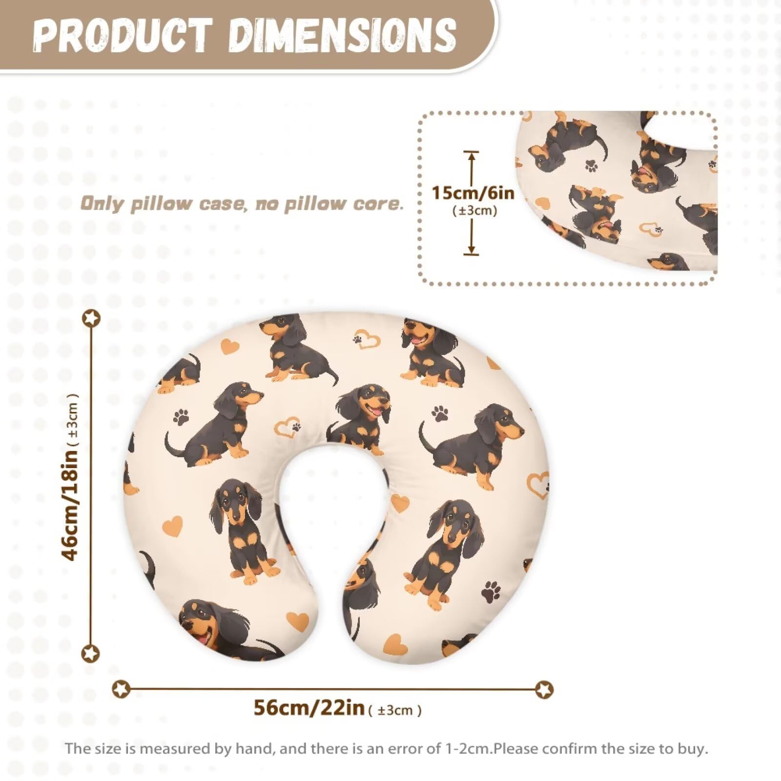 Baby Nursing Pillow Cover Breastfeeding Nursing Pillow Slipcovers Super Soft Thoughtful Design Our products are designed with a hidden zipper to protect your baby's skin from the details. And the U-shaped design is more convenient for force and support. Size Measures 5.9in thick, 22.4in wide, 17.7in long. You can refer to the picture details for the exact dimensions. Safe and Soft This product is lightweight, breathable, soft and sweat-absorbent, which can protect the baby while providing comfortable support for both adults and babies. Applicable Scenarios Suitable for bedroom, living room, car, mother and baby room and other occasions, help you take better care of your child. Washing Methods Can be hand washed or machine washed, do not soak for a long time, do not bleach, the temperature of the washing liquid can not exceed 45ºC. Tips Please do not put this product near the fire source. Product due to different measurement methods, there may be 1-2cm error.