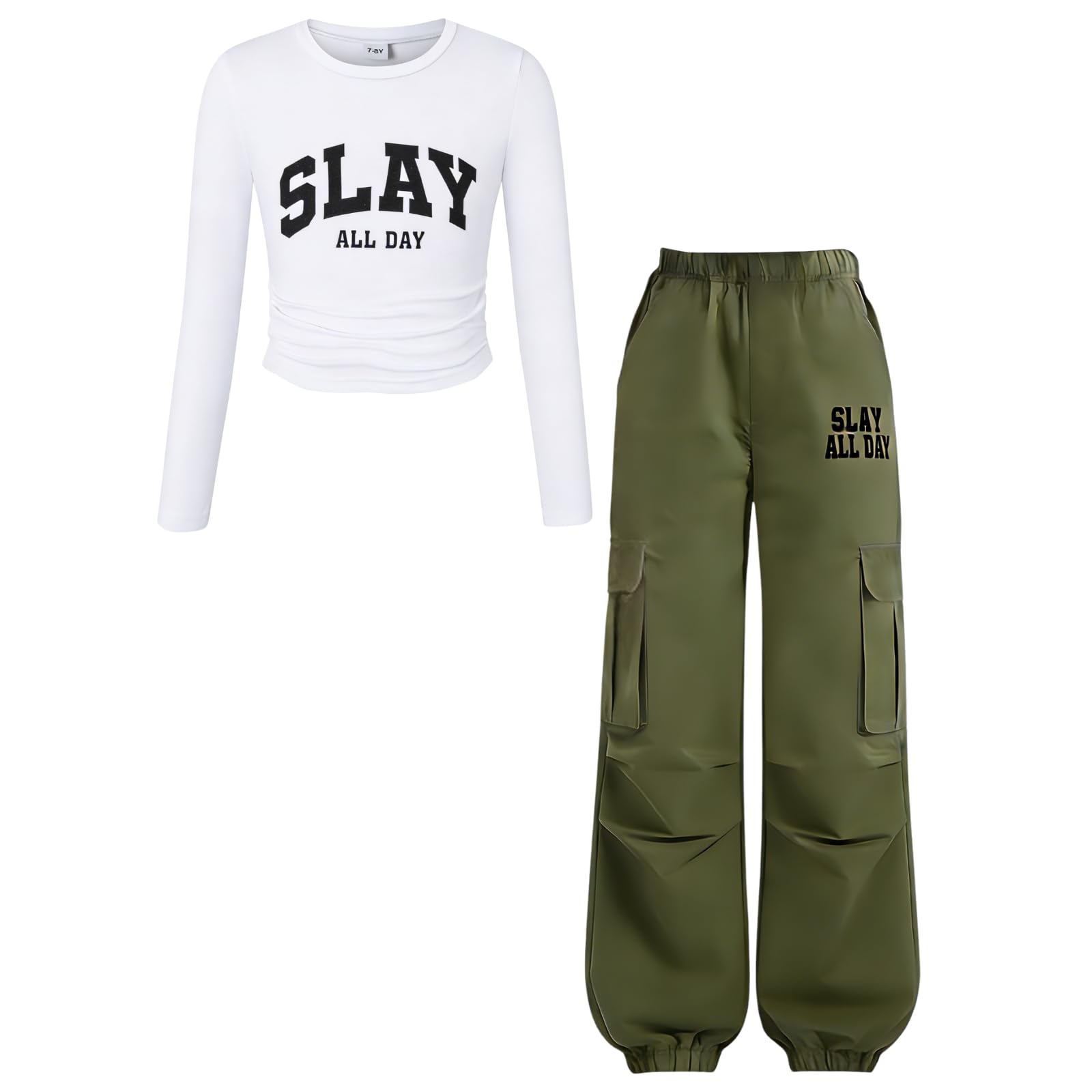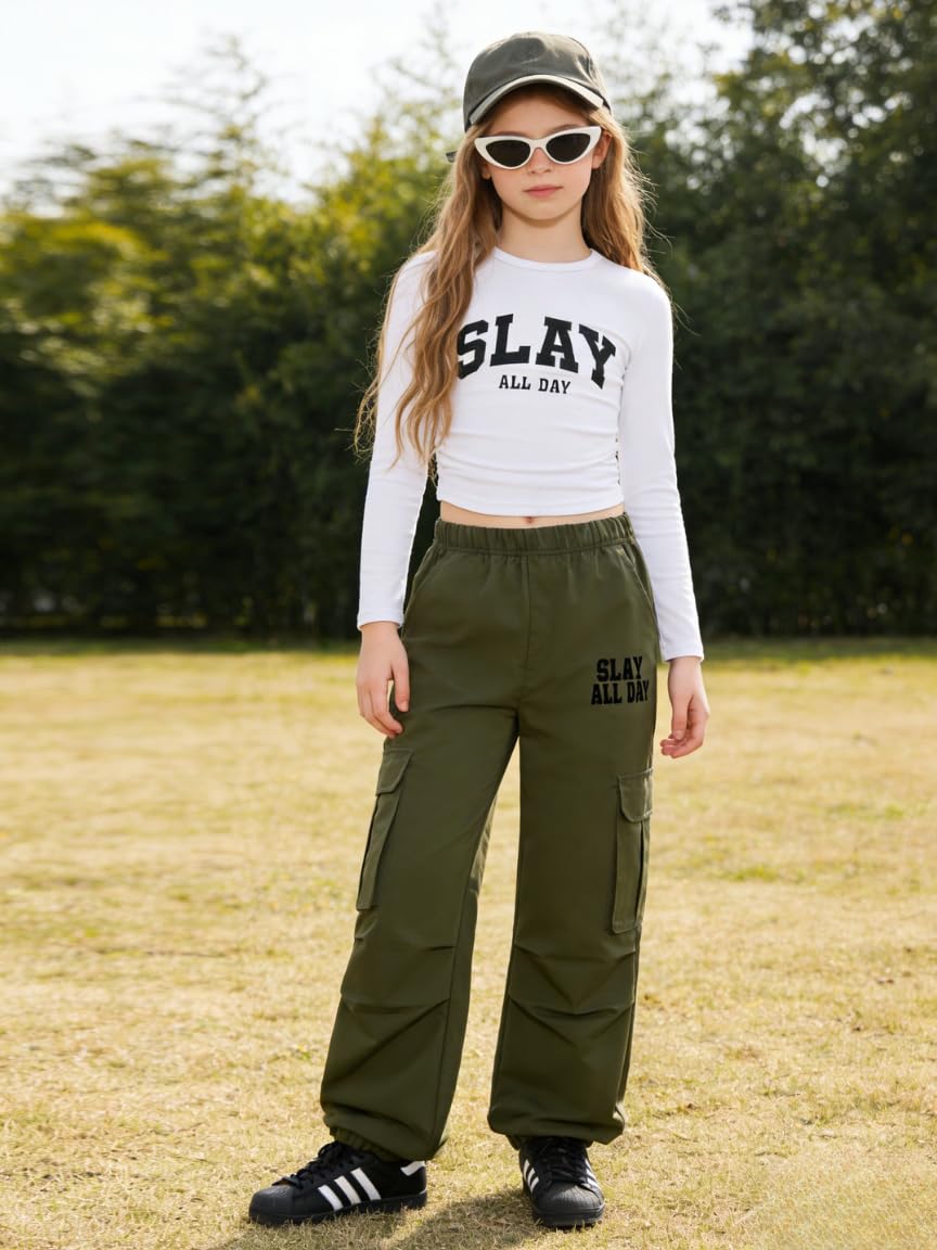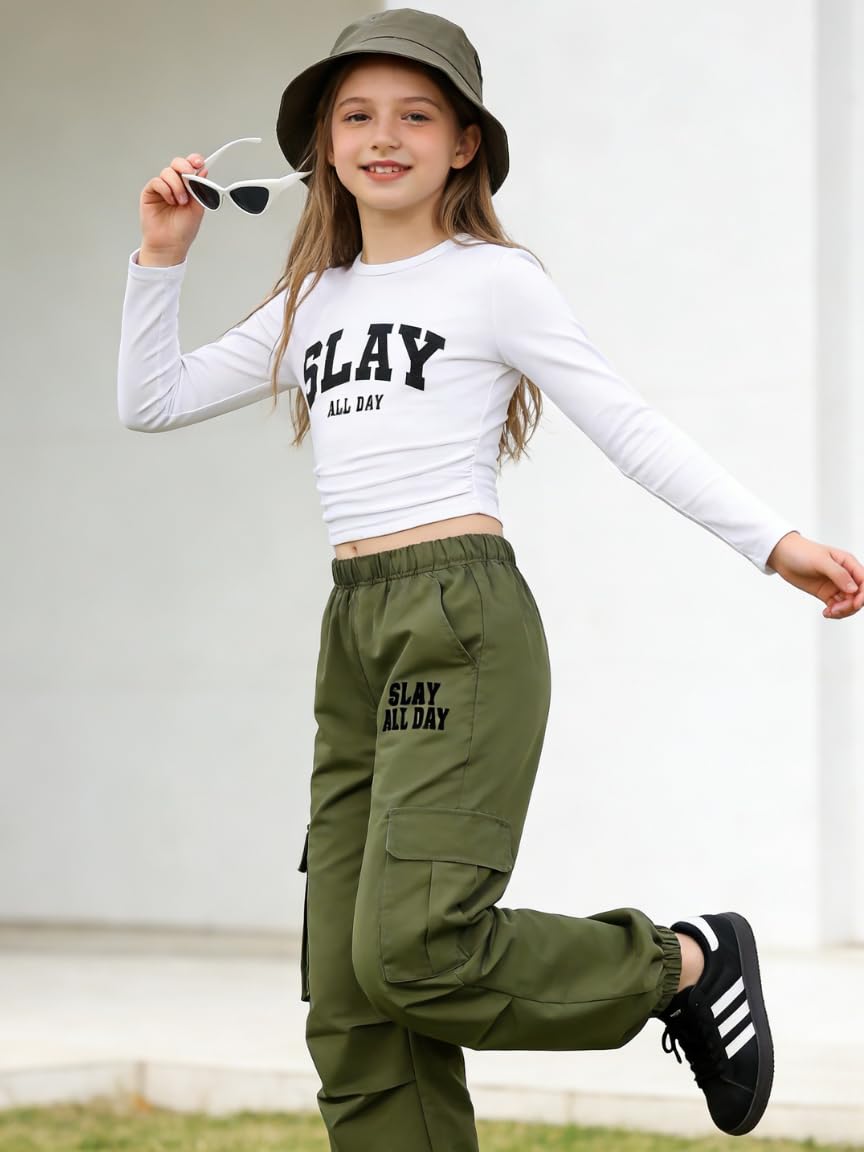 Description This tween girls clothes set includes a graphic print long sleeve top and matching jogger pants, designed for girls ages 7–16 years. The bold lettering adds a trendy streetwear vibe loved by tween and teen girls. Made from soft and breathable fabric, this outfit provides all-day comfort for school wear, casual outings, and everyday activities. The jogger pants feature an elastic waistband and cuffed ankles, offering a relaxed yet stylish fit that allows freedom of movement for active girls. Suitable for spring, summer, fall, and winter, this 2 piece outfit can be worn on its own or layered with jackets and coats in cooler seasons. Perfect for school, travel, sports-inspired outfits, and daily casual wear, this tween and teen girls outfit set is both fashionable and practical.