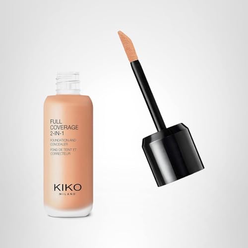 DESCRIPTION: 2 in 1 foundation and concealer with superior coverage. The innovative dual-action formula - foundation and concealer - is finally part of the KIKO range! Full Coverage 2-IN-1 Foundation and Concealer works on the skin by hiding and minimising all blemishes (under eye circles, discolouration, fine lines etc.) and leaving a second skin-effect veil on the face, with a matte satin finish, ideal as the base for all types of makeup. Skin remains smooth and flawless all day. The creamy super-fluid texture provides a feeling of comfort upon application, ensuring extremely easy coverage and optimum blendability. Thanks to the even distribution of pigments within the formula, the superior coverage means an extraordinary buildable result can be achieved, also thanks to the perfect adherence and excellent colour release. The applicator was designed to perform both functions of Full Coverage 2-IN-1 Foundation and Concealer: the rounded tip is perfect for little touch-ups and to minimise blemishes to be concealed, while it is possible to apply and blend foundation with the flat part, for full coverage in just a few gestures. Ideal for normal to oily skin. Available in many shades for all skin tones. Dermatologically and ophthalmologically tested. RESULTS: The face is flawless and blemishes disappear, skin is even and smoothened, with a long-lasting matte satin finish. ADVICE: Simply apply a small amount of product for a smoothened, full coverage result. PAO: 12 Made In: IT