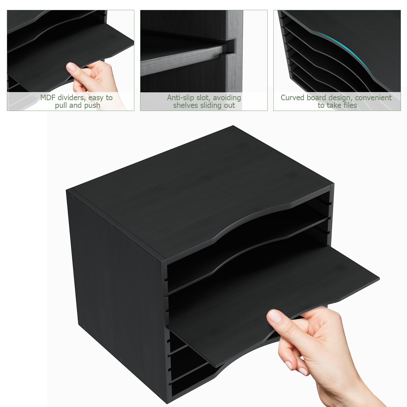 【BLACK PAPER ORGANIZER】Improved quality and craftmanship, delicated screws, anti-slip slots, reinforced smooth bamboo frame will definitely enhance your working or studying experience. Bamjoy file sorter organizer is beautifully crafted with care and pleasure to your eyes.