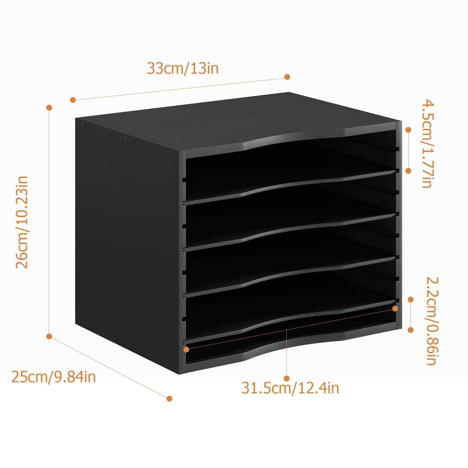 【SIZE】Overall size of the bamboo desk organizer is 13L x 9.8W x 10.2H in (33 x 25 x 26 cm). Inner width of 12.4 inches(31.5cm) can easily sorting up your A4 or letter Size papers and documents. Bamjoy bamboo file organizer waits for your stop-by and love!