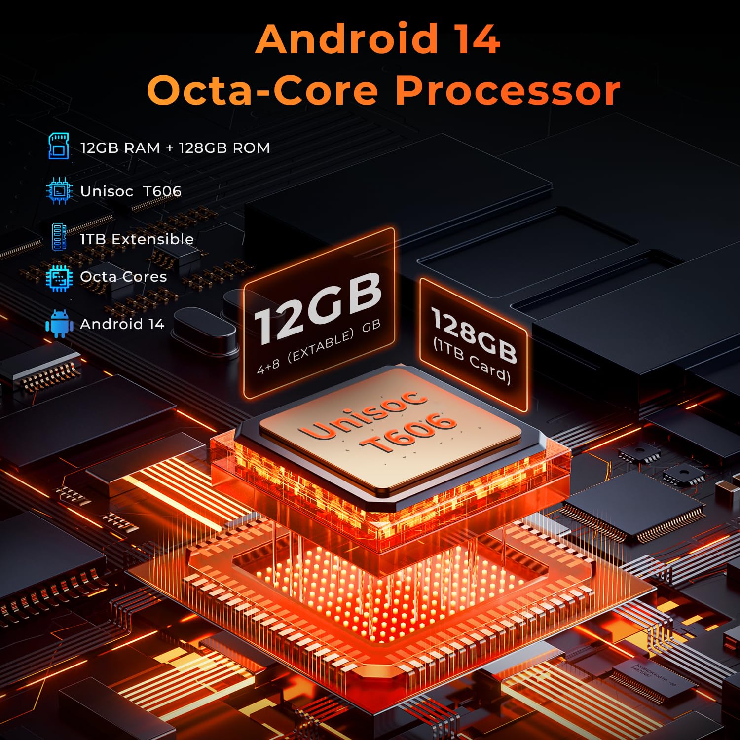 đăAndroid 14 & Octa-coreăHOTWAV R8 rugged tablet, newly upgraded with Android 14 management system, has made great improvements in protecting personal privacy and personalized settings, making it safe and comfortable to use. The R8 rugged tablet is equipped with an octa-core processor Unisoc T606, which can quickly process the operations you need without lag even when multiple background software are opened.