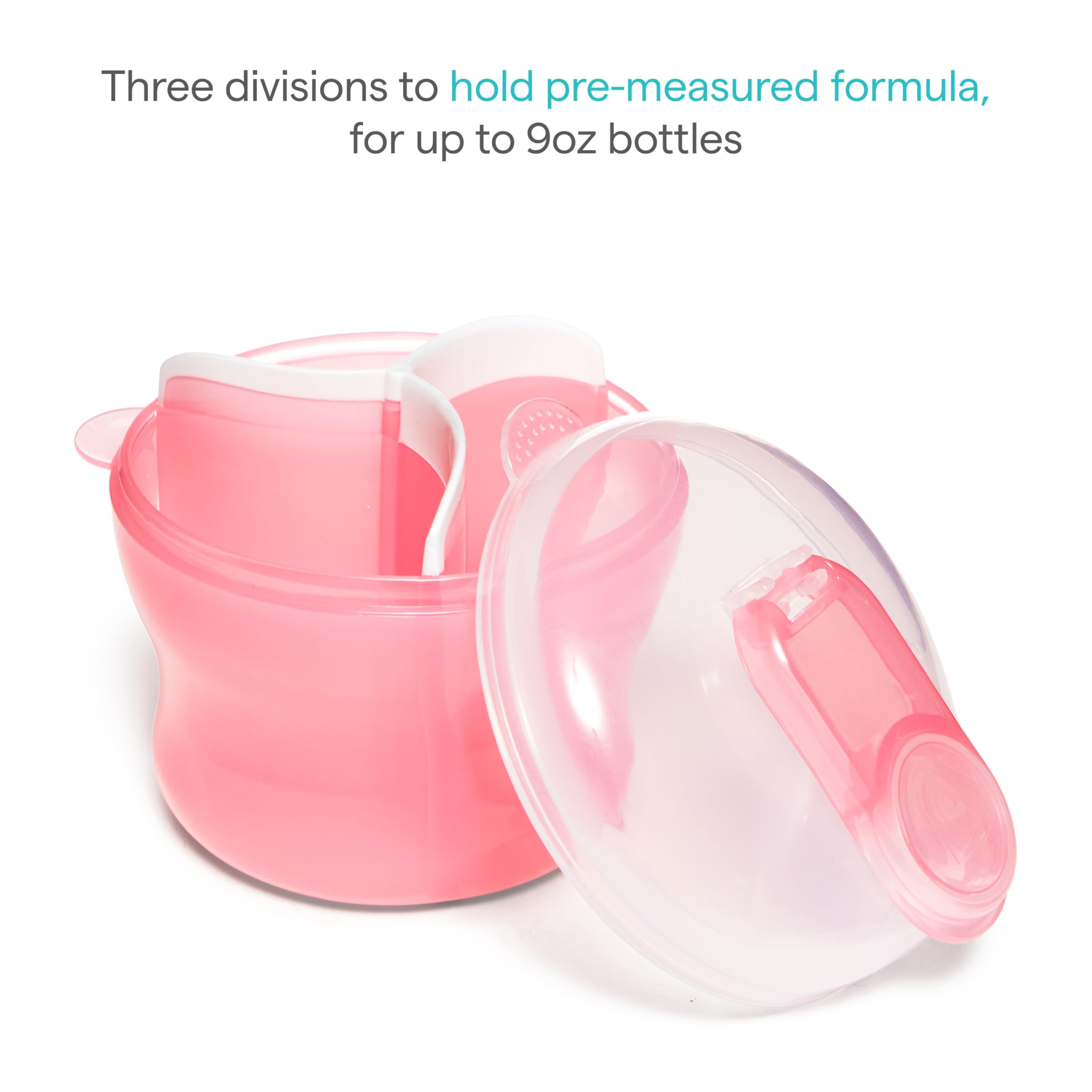 Ditch the bulky containers and plastic baggies of formula in your diaper bag. Munchkin's Formula Dispenser makes on-the-go bottle feeding better with three separate compartments for your carefully measured formula, plus a large, easy-to-pour spout. You deserve even more feeding wins, so it includes a flexible seal to prevent spillover between sections, too. No more wasted scoops or second-guessing portions, just quick access when you need it the most. It works perfectly with baby cereals too, so you can prep meals anywhere from the park to grandma’s house, and even errand runs. Compact enough for any diaper bag, this Formula Dispenser means you're always ready when baby’s ready (minus the mess and stress). Don’t leave home without it!
