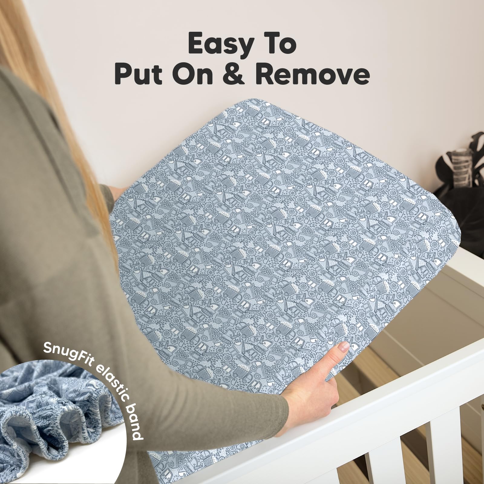 Easy To Put On - Our baby sheets for crib use SnugFit Tech, a smart fabric knit that stretches effortlessly for quick fitting and removal of the toddler bed sheets. No more struggling with rigid fabric!