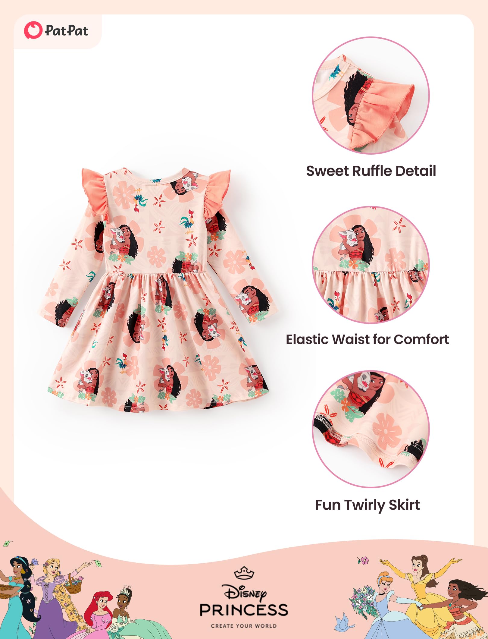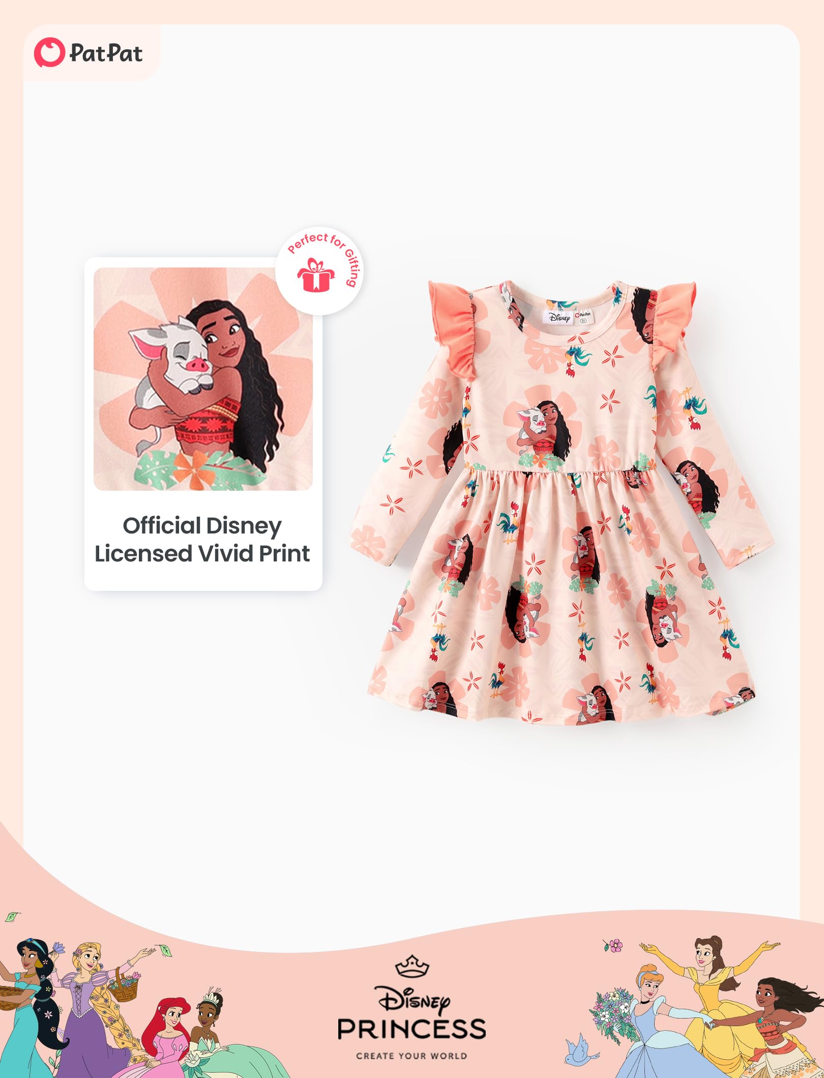 Tropical Moana Dress for Girls: Say aloha to everyday adventure with this adorable long-sleeve dress featuring Moana, Pua, and Hei Hei from Disneyβs Moana. The soft coral color, floral prints, and playful flutter sleeves bring tropical charm, while the stretchy waist and twirly skirt make it perfect for playdates, vacations, or adding a bit of island fun to her wardrobe