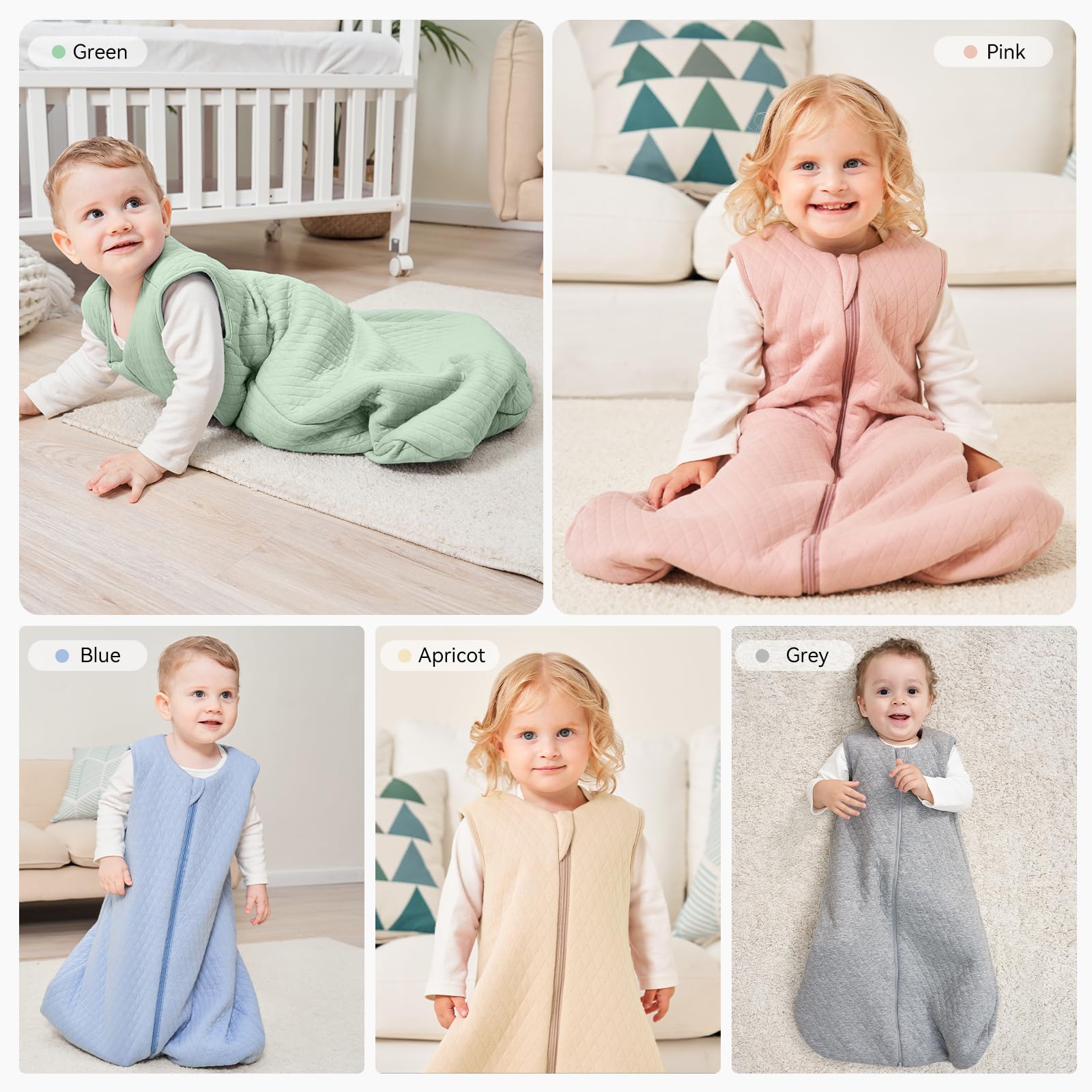 Warm and Cozy - This baby sleep sack made with 100% Organic cotton fabric and fluffy polyester filling, super-soft and breathable for comfort. TOG 2.5 sleep sack is ideal for cooler weather. 3-layer breathable material and sleeveless design helps regulate baby's temperature, reducing overheating risk and ensuring warmth and cozy.