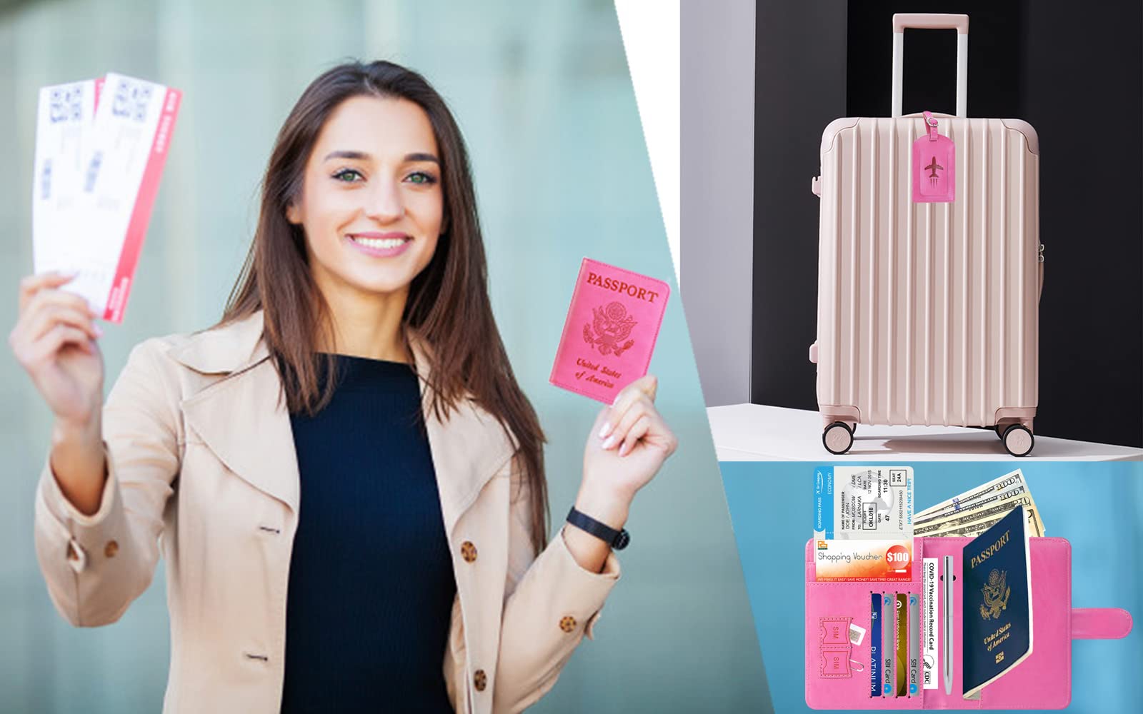 【HIGH-QUALITY SYNTHETIC LEATHER】 - The passport holder with suitcase tag is designed specially for universal airplane travel. luggage tag and Passport cover made from premium high-quality ECO-Friendly synthetic leather, touch soft and comfortably base on more sponge added.