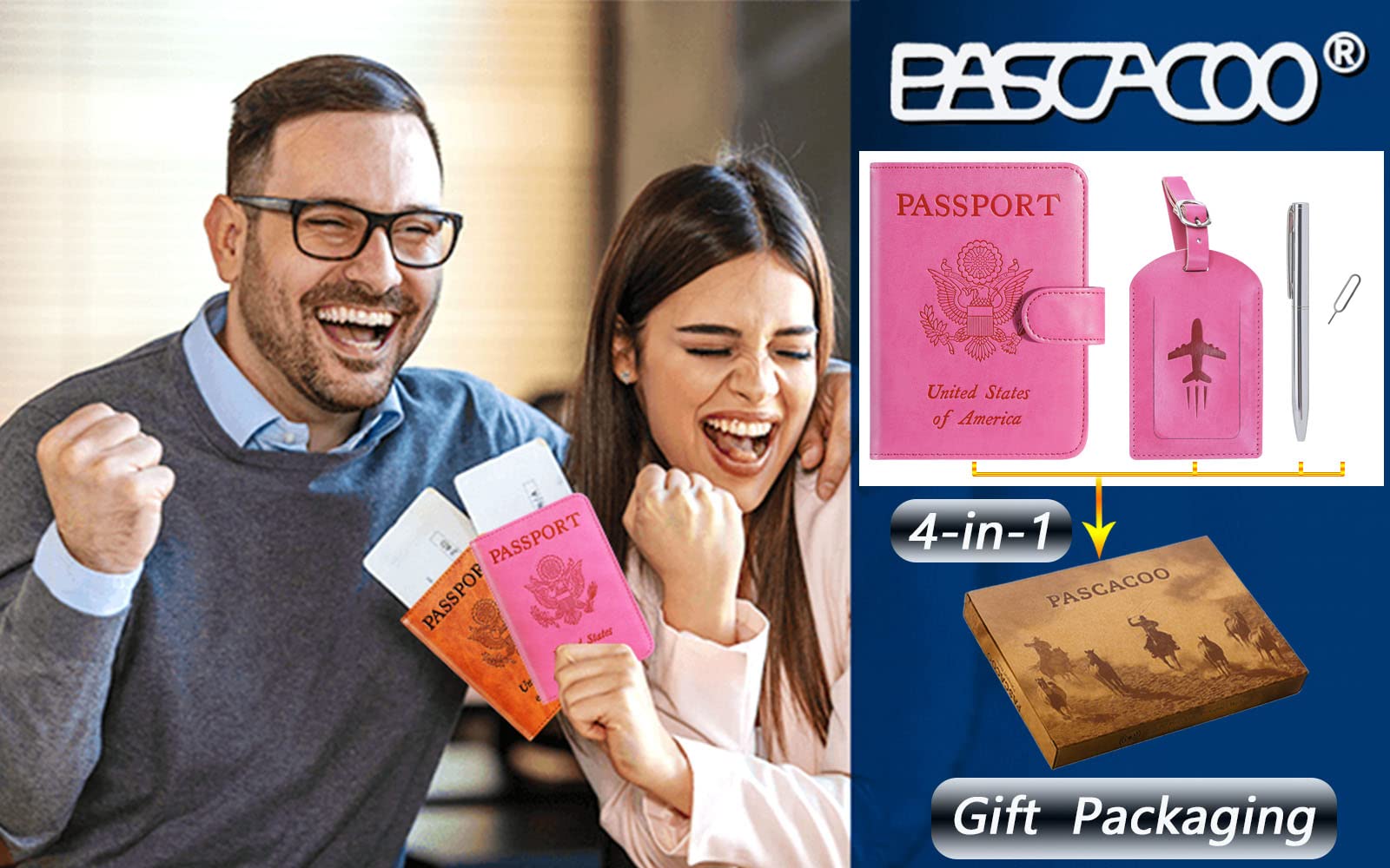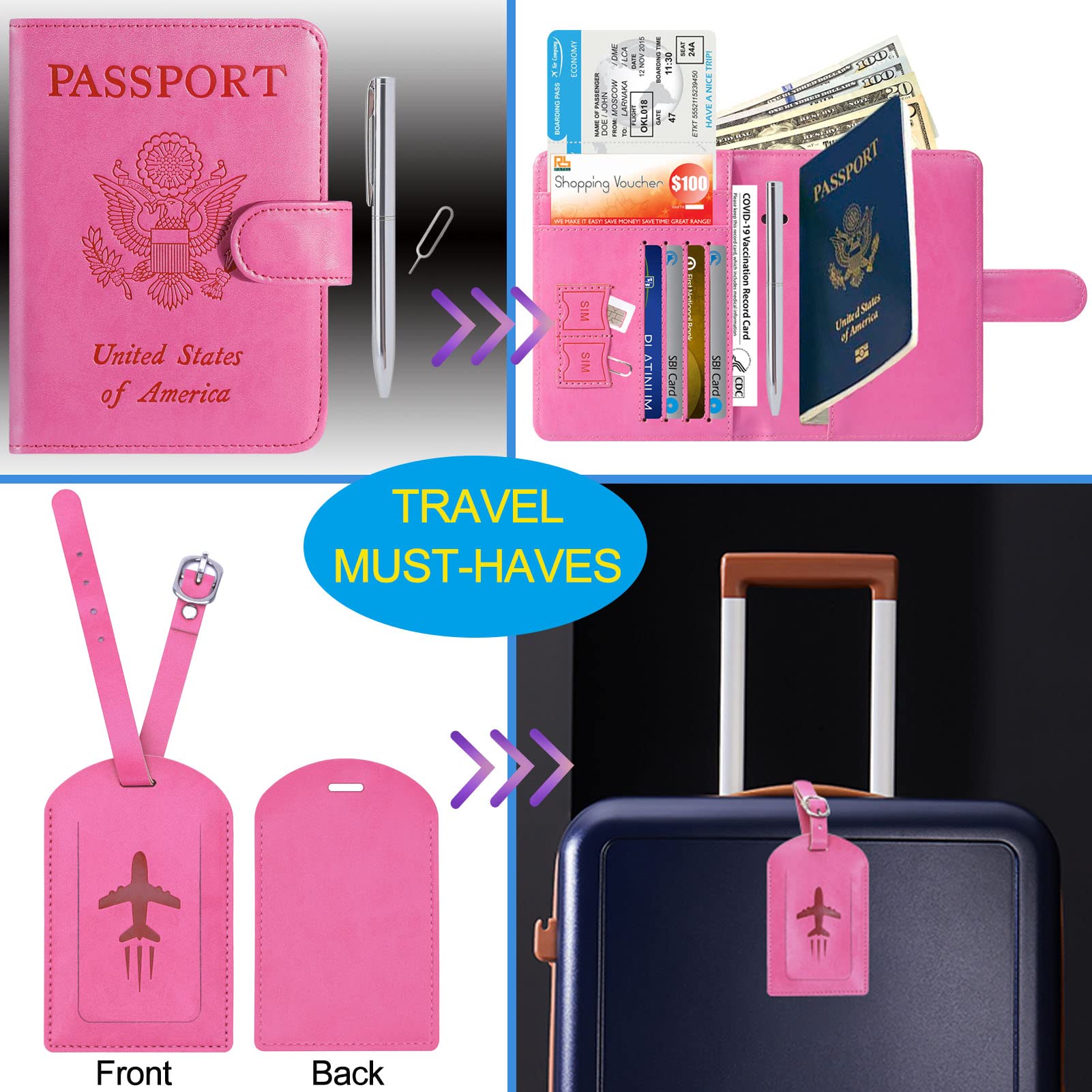 【PASSPORT HOLDER WITH LUGGAGE TAG AND PEN VERSION】 - The package includes: 1 luggage tag, 1 Passport wallet, 1 metal pen, 1 metal pin. The metal pin is used to change SIM card on your phone when you travel internationally. And the pen is convenient for you to fill in relevant information when you transit. International travel must haves.