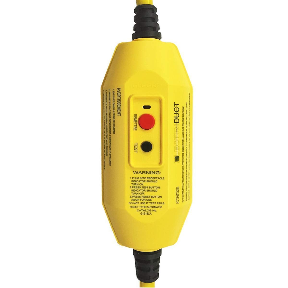 SPECIFICATIONS: Class A GFCI | 15 Amp | Automatic reset turns on upon being plugged in or after a power outage | Unit must be reset manually after a Ground Fault