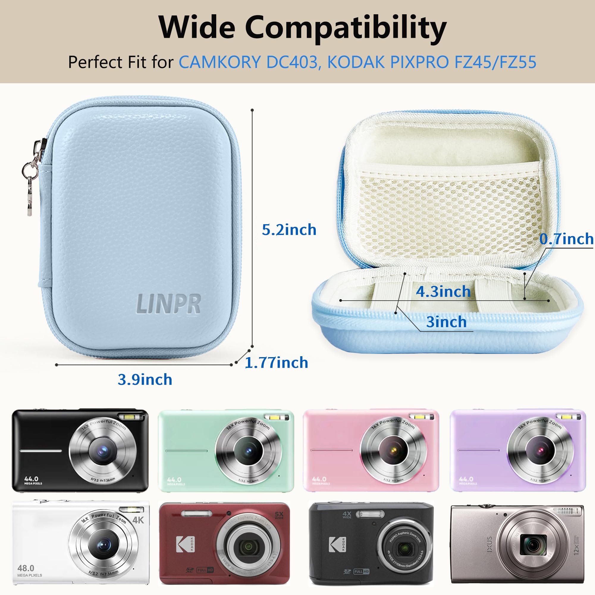 Perfect Fit: This digital camera bag has wide compatibility with KODAK PIXPRO FZ45/FZ55, CAMKORY, Lecran, FJFJOPK, Lecnippy, Canon IXUS digital cameras. Compact and portable, it fits easily into pockets and backpacks without taking up much space. External dimensions: 5.2x3.9x1.77 inches