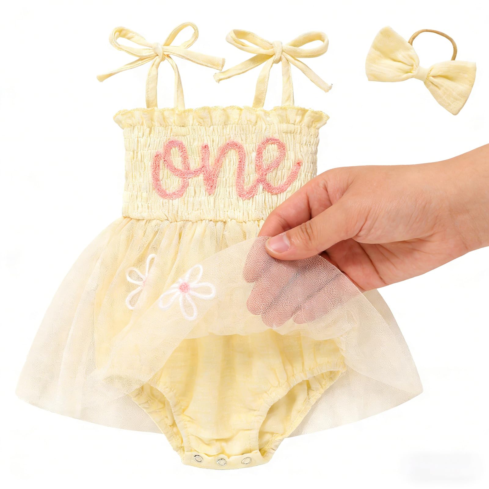 Design: Newborn baby girl playwear romper dress with sleeveless, solid color, multi-layered tulle, Snap leg openings for easy diaper changes, easier morning for novice mother.Cute princess 1st birthday outfit, fashionable and adorable embroidery ONE printed themed birthday clothes perfect for creating beautiful memory of her first birthday.