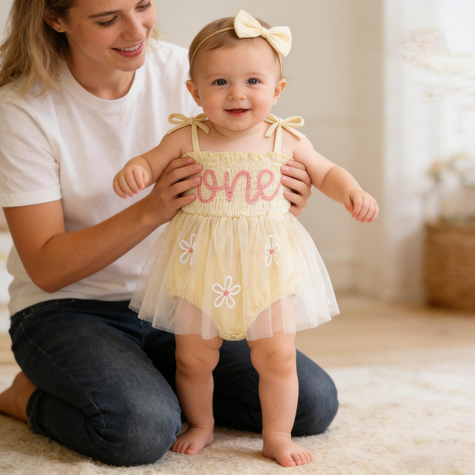 Occassion: Baby girls princess 1st birthday clothes is a best choice for 1st birthday party. Baby rompers girl tutu dress suitable for many occasions, such casual, family parties, one birthday party, baby photo, baby shower gifts, festival, summer daily life etc.